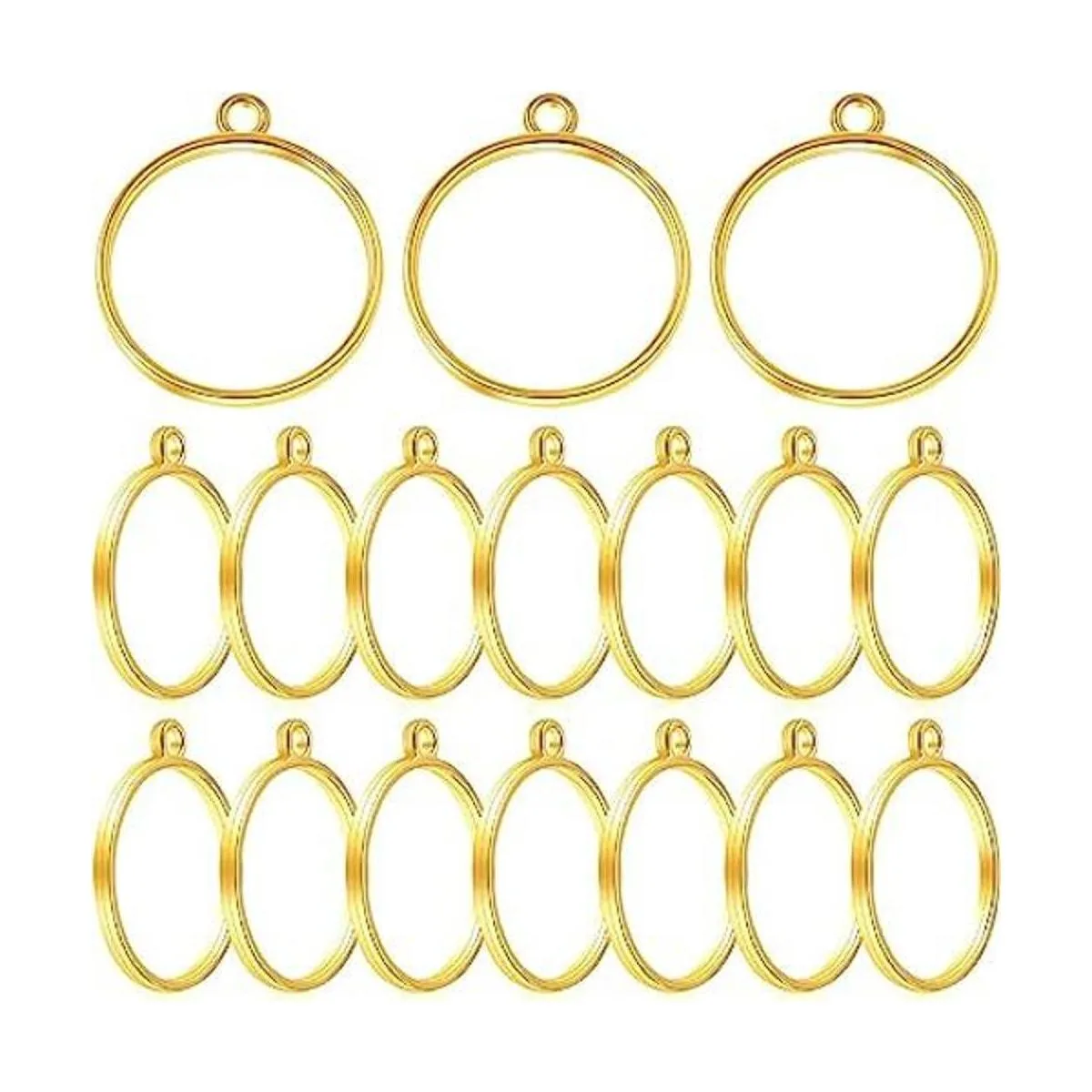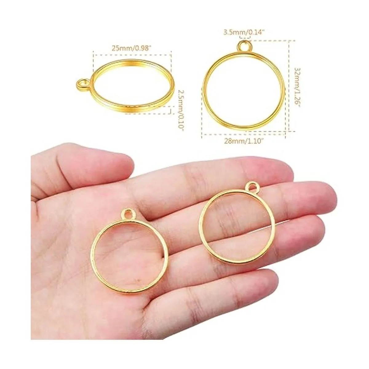 Detalles de las dimensiones: estos colgantes redondos de marco abierto miden aproximadamente 0.984 in de diámetro interior, 1.102 in de diámetro exterior, agujero: 0.138 in de diámetro, asegúrate de que este tamaño satisface tus necesidades antes de realizar un pedido.