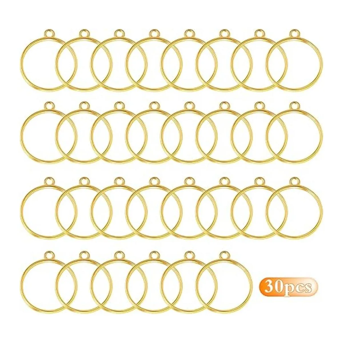 Cantidad adecuada: hay 30 colgantes dorados redondos de bisel trasero abierto en el paquete, joyas seguras o componentes de fabricación de manualidades, suficiente para hacer joyas y otros propósitos.