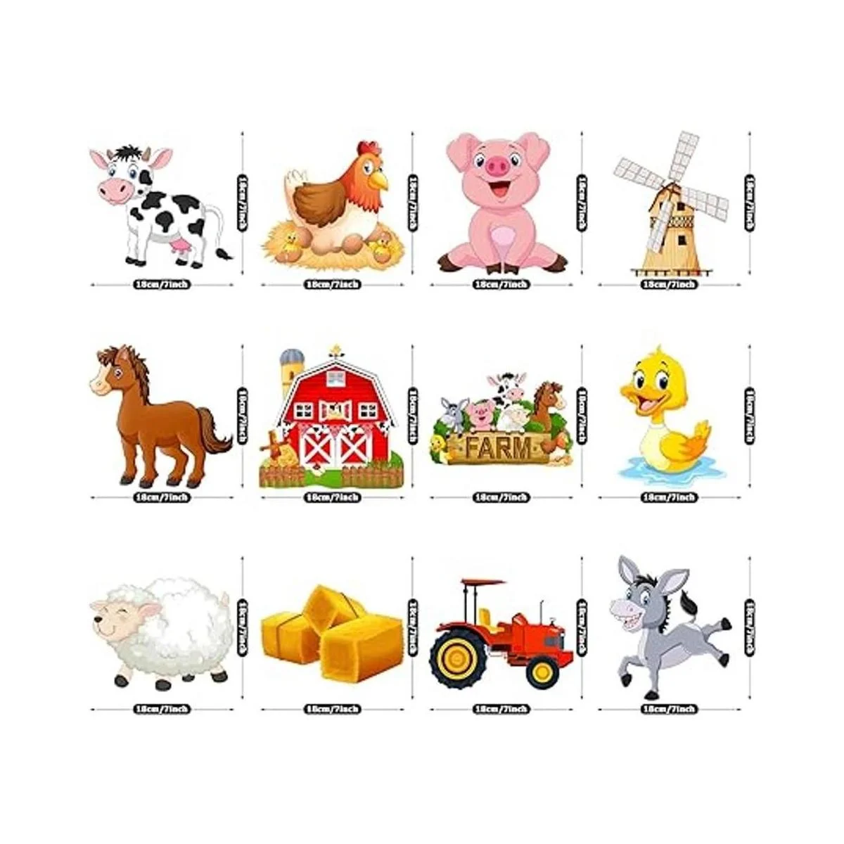 Información sobre el tamaño: cada tarjeta de corte de fiesta de animales de granja mide aproximadamente 7.1 x 7.1 in. Cada remolino se puede extender hasta aprox. 30 38 pulgadas de largo; con la ayuda del gancho en la parte superior, puedes colgar esta decoración de remolino de animales de granja en cualquier lugar que desees, pueden crear una escena llamativa para tu fiesta temática de granja