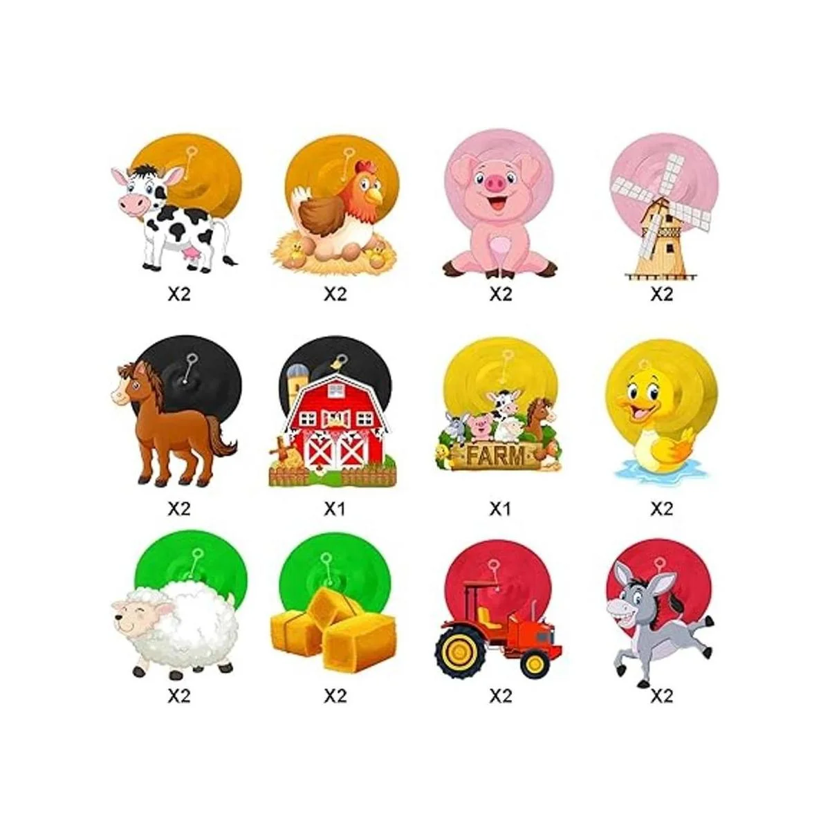 Cantidad suficiente: hay 30 piezas de decoraciones de remolino de aluminio, entre las cuales hay 22 decoraciones de remolino de aluminio con tarjetas de recorte de fiesta de animales de granja en 12 estilos diferentes, y 8 decoraciones de doble espiral sin recortes; son hermosas decoraciones para celebrar una impresionante fiesta de granja, haciendo que tu fiesta sea más colorida y memorable