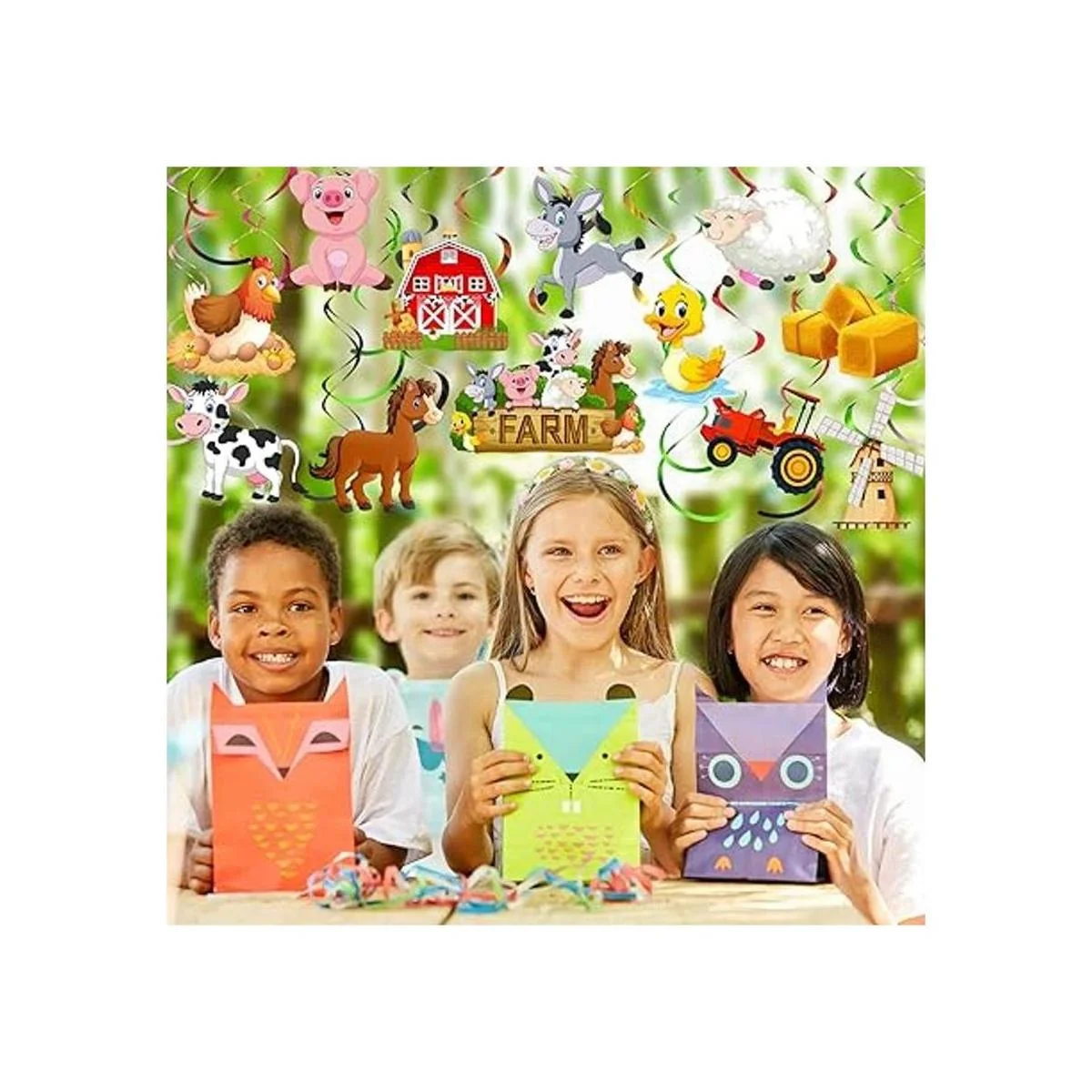 Amplia aplicación: estas decoraciones de remolino de fiesta de animales de granja son adecuadas para fiestas de cumpleaños temáticas de granja, fiestas de granero de animales de granja, baby shower, etc. Solo tienes que montar estos remolinos colgantes y puedes colgarlos de paredes, el techo, en una puerta, ramas de árbol en tu patio trasero para fiestas en interiores al aire libre, dejando recuerdos felices a familiares y amigos