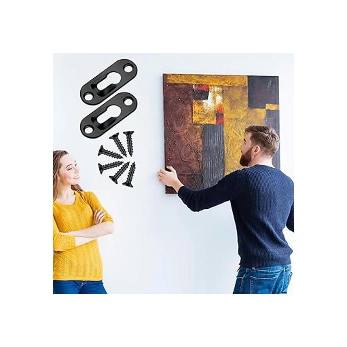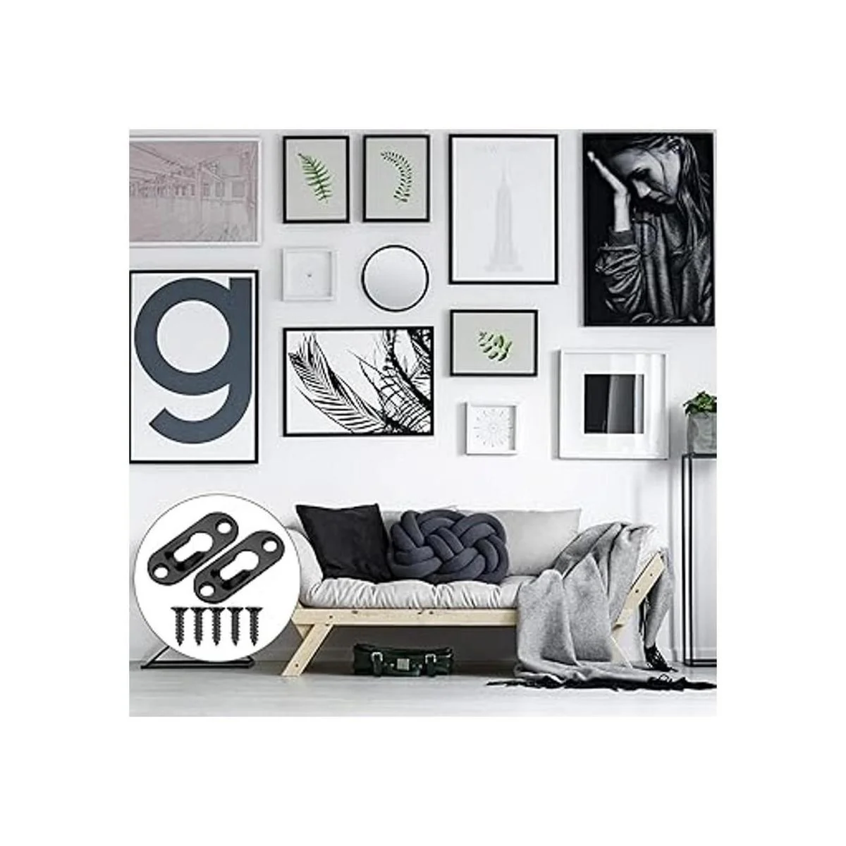 Fácil de instalar: los ganchos individuales solo requieren insertar y fijar los tornillos en los agujeros en ambos extremos, y luego puedes colgar tu marco de fotos y espejo en la pared; los tornillos incluidos ayudan a atornillar firmemente la placa colgante en la pared para evitar que se afloje o se deslice