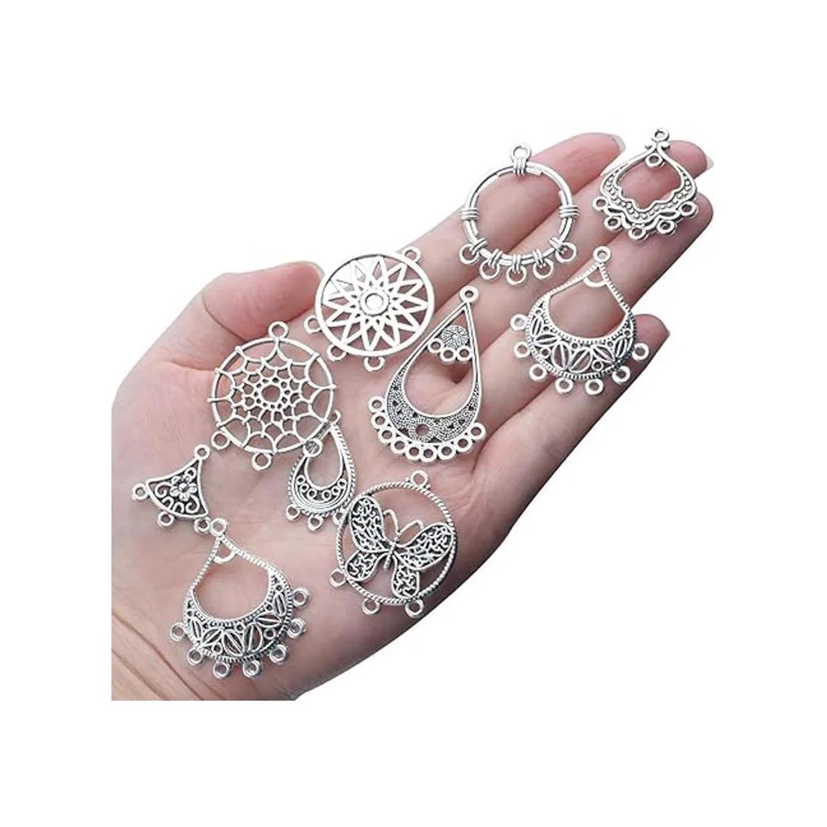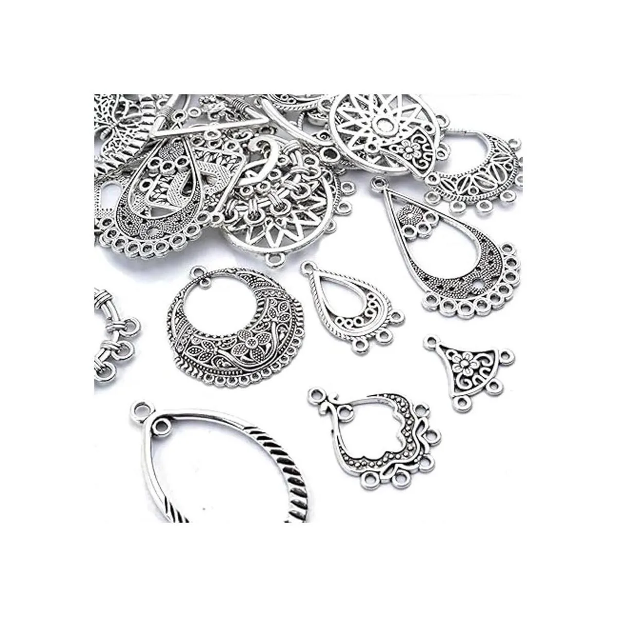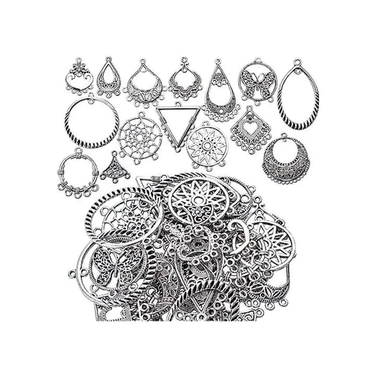 30 piezas de plata antigua lámpara pendientes conector componentes encantos joyería para pendientes gota y colgante de encanto, 15 estilos