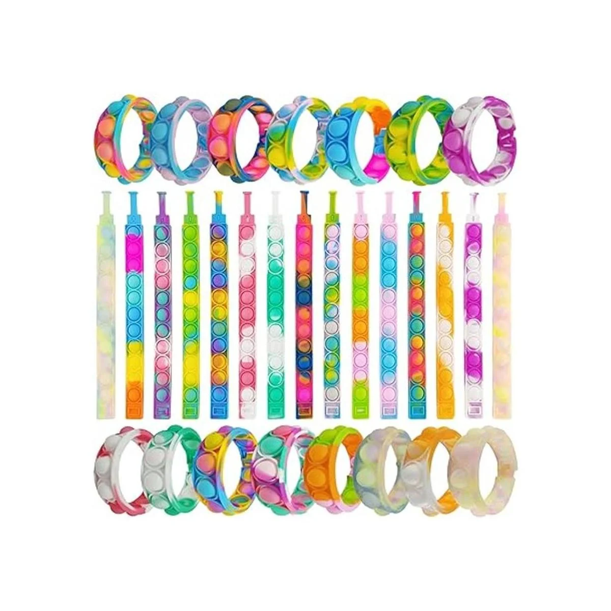 30 piezas de pulseras de burbujas para recuerdos de fiesta, pulsera de silicona de mano y dedo a granel para premios de clase estudiantil, relleno de bolsas de regalos, regalos de cumpleaños, Navidad, San Valentín para niños