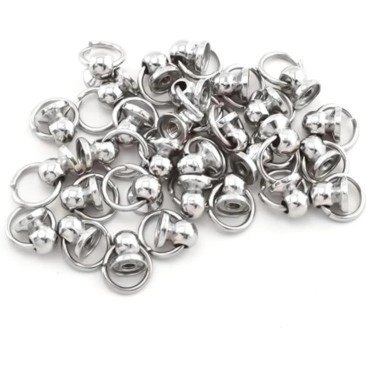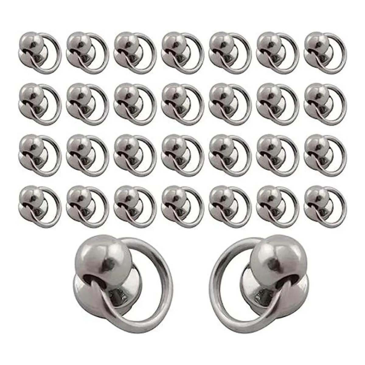 30 piezas de remaches de rosca de cabeza redonda plateada con anillo de tracción para manualidades de cuero, ropa, bolsos, sombreros, cinturones, etc.