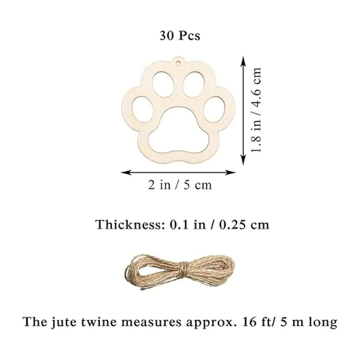 Paquete: paquete de 30 piezas de mini huellas de perro de madera para manualidades y 1 cuerda de yute la cuerda de yute mide aproximadamente 16.4 ft de largo. Cada pieza de madera está bien pulida, las rodajas de madera en blanco están listas para pintar y escribir, puedes teñir, perforar, curvar y decorar como quieras.