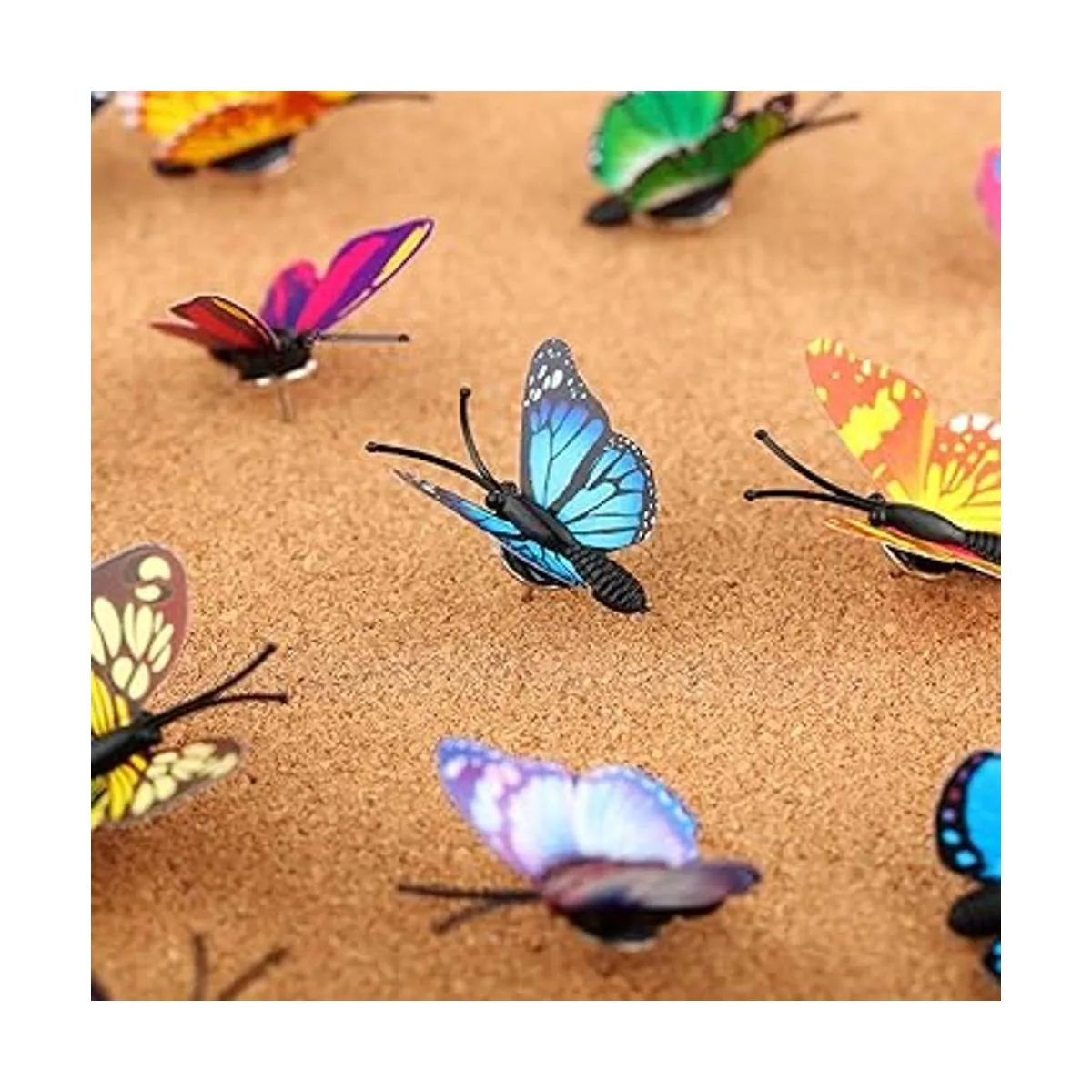 Alfileres de mariposa: mariposas coloridas para alegrar el estado de ánimo en la oficina, aula, hogar; alas de plástico realistas añaden un efecto 3D a la mariposa, que decoran tus tablas de corcho