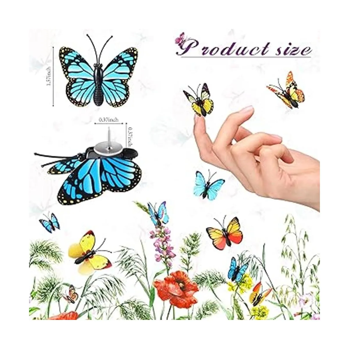 Material: los pasadores de mariposa están hechos de mariposa de plástico y tachuelas de metal, cada mariposa mide aproximadamente 1.5 pulgadas de ancho