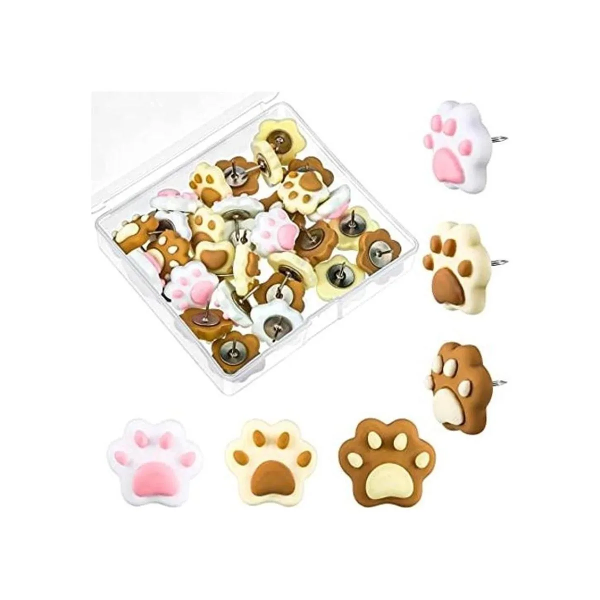 Bonito y práctico: el bonito diseño de pata de gato puede añadir un toque de color a tu espacio de trabajo; la caja de plástico transparente con cubierta satisfará tus necesidades de almacenamiento, lo que hace que estos pasadores decorativos sean fáciles de ordenar y no se dispersen fácilmente