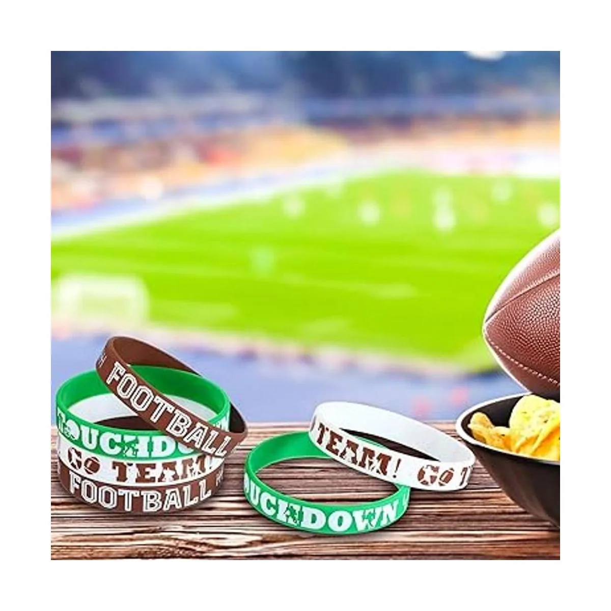 30 pulseras de silicona para fiesta de fútbol, accesorios de goma con temática de cumpleaños de fútbol, pulsera de fútbol para niños, adultos, relleno de calcetines, suministros de decoración de fiesta de fútbol, Caucho