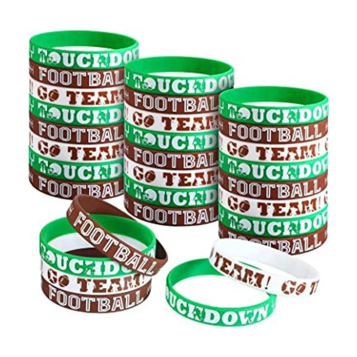 Las pulseras de goma de fútbol son maravillosos accesorios para decoración de fiestas de fútbol, fiestas temáticas de cumpleaños de fútbol y otras ocasiones, también sirven como bonitos regalos y recompensas.