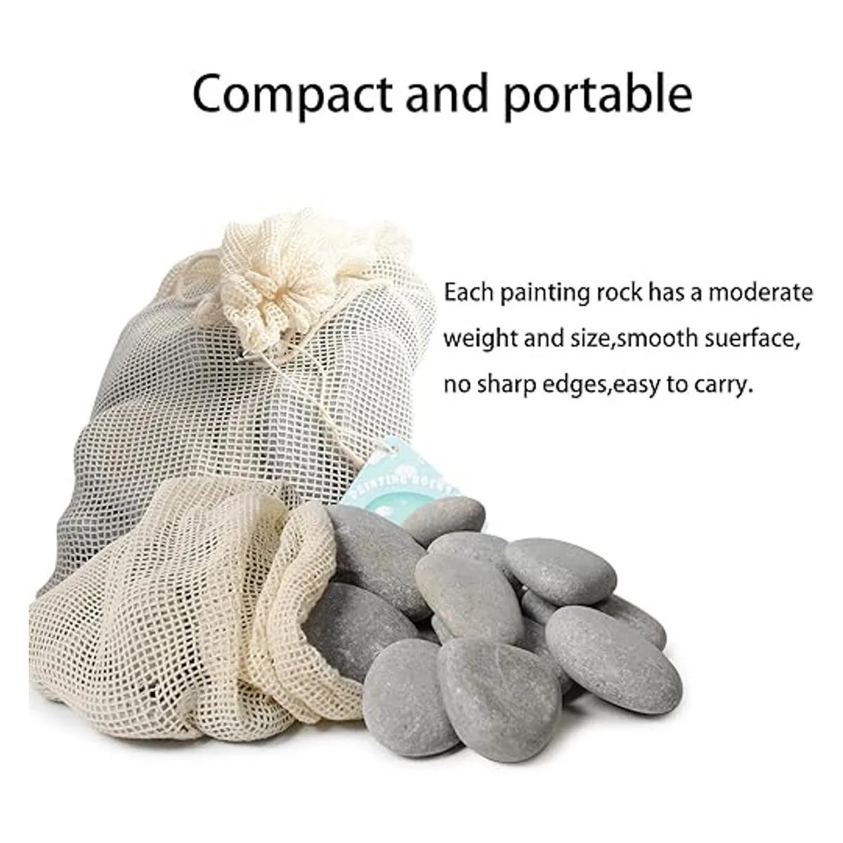 Rocas de río para pintar: 30 piedras de pintura con embalaje de bolsas de malla de alta calidad, alrededor de 1.2 a 3.5 pulgadas al menos la mitad de ellas son piedras de 2 a 3 pulgadas, que son seleccionadas por nuestros artesanos profesionales, varios tamaños para satisfacer tus diversas necesidades y efectos creativos.