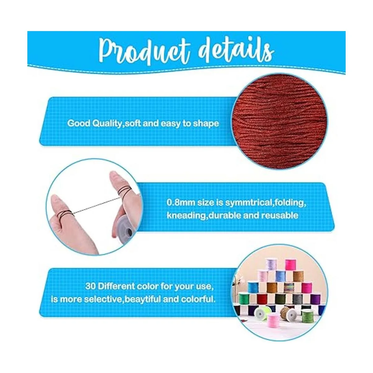 30 rollos de 30 colores de 0.031 in de cuerda de nailon para macramé, cuerda de nailon mixta para pulsera de amistad Kumihimo, adornos para hacer joyas, 656 yardas