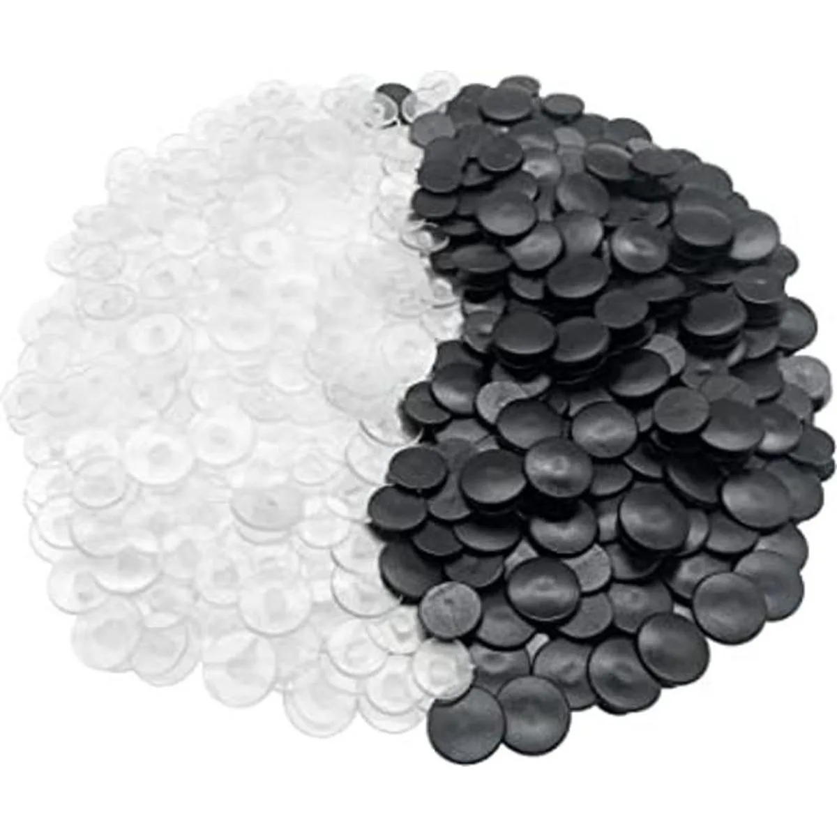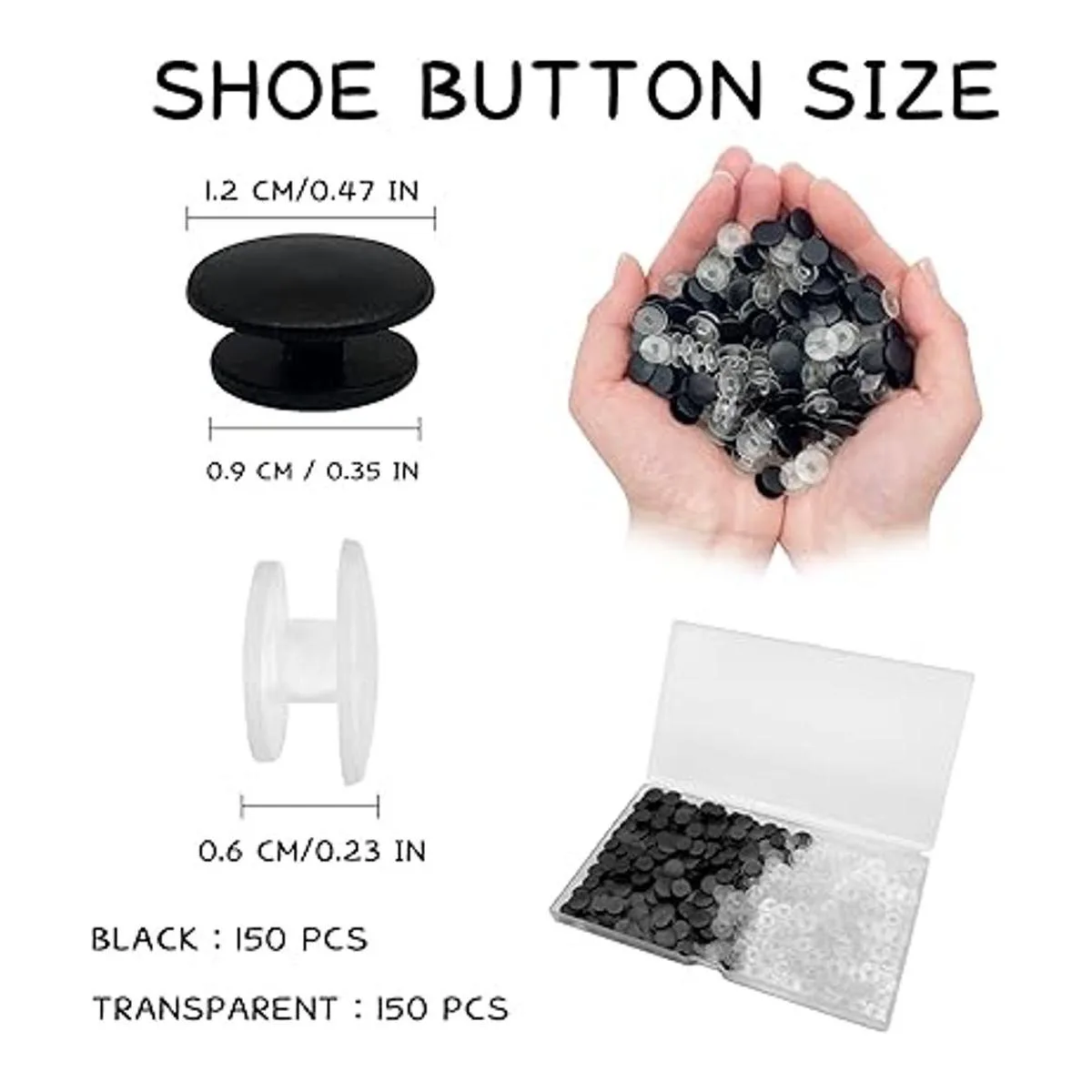 El paquete incluye: recibirás 300 dijes de botón en total, incluye 150 piezas transparentes y 150 botones de plástico negro. Cantidad suficiente y 2 colores diferentes pueden satisfacer todo tipo de necesidades de decoración para proyectos de bricolaje.