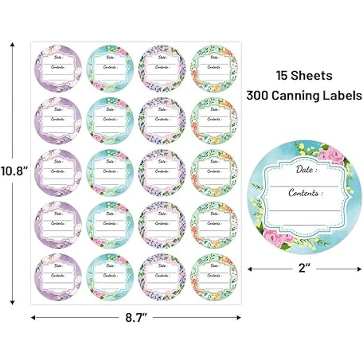 300 etiquetas de conservas impermeables para tarros, etiquetas de tarros de masón, etiquetas redondas para alimentos, recipientes de alimentos, tapas de tarro de especias, recipientes, suministros de conservas de 2 pulgadas