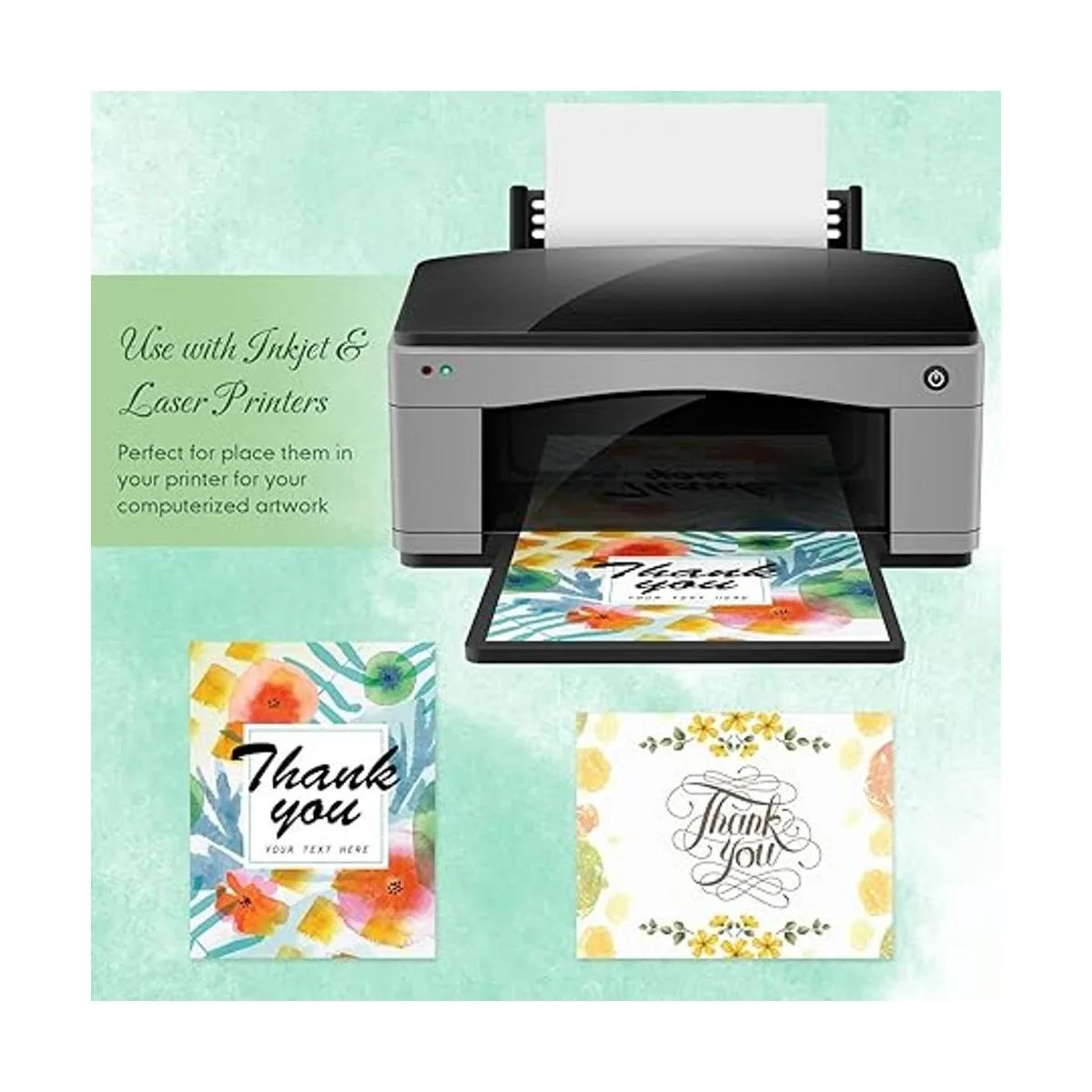 Apto para impresoras de inyección de tinta y láser: nuestros papeles de vitela tienen una superficie lisa, grosor y empaquetado plano para impresoras láser, sin atascos ni manchas, adecuado para manualidades con marcadores y acuarelas o colocarlos en tu impresora para tus obras de arte computarizadas