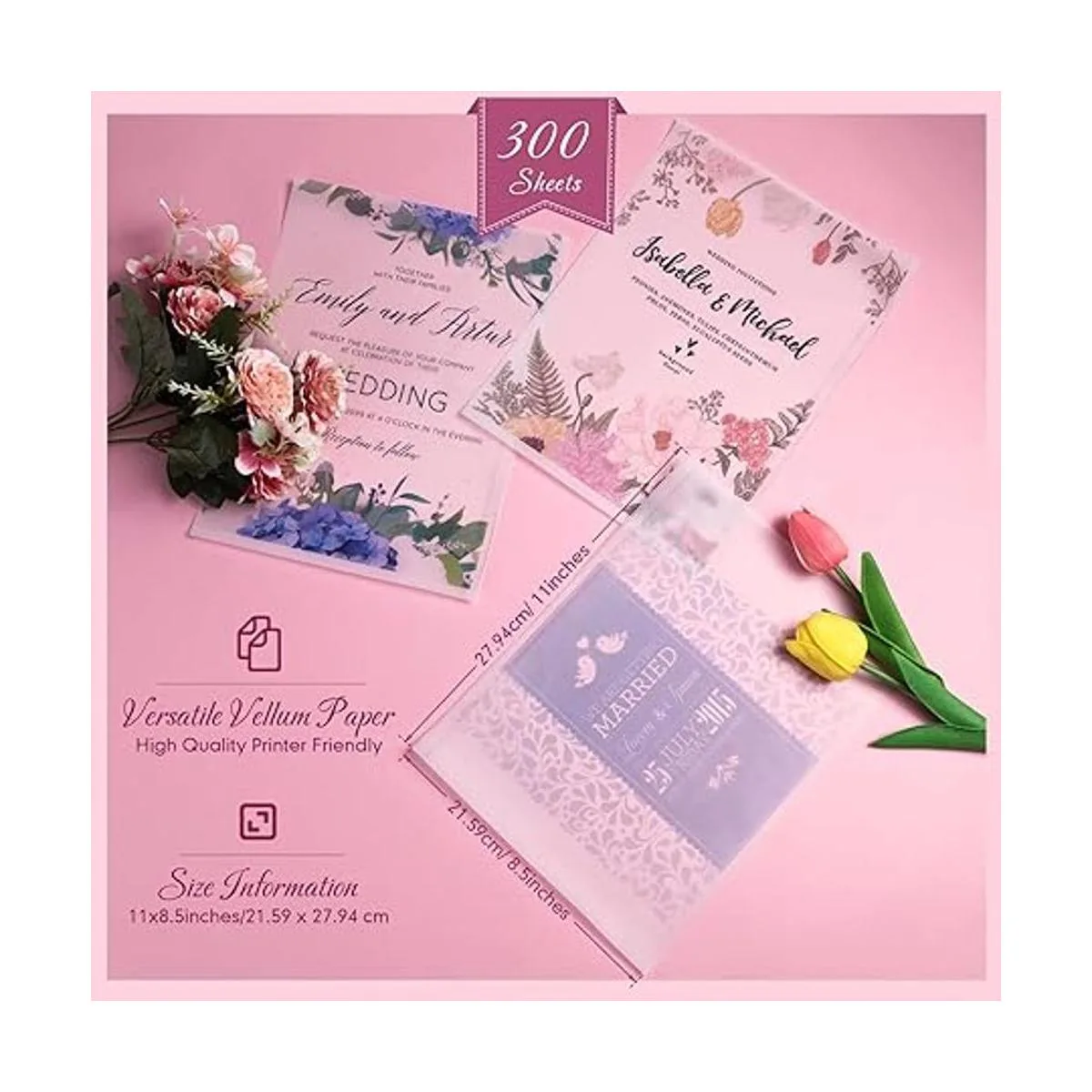 300 hojas de papel de vellum de 8.5 x 11 pulgadas, papel de vellum imprimible translúcido para chaquetas de vellum, invitaciones de boda, tarjetas, superposiciones de fotos, bocetos, tarjetas de rastreo, superposiciones de farol