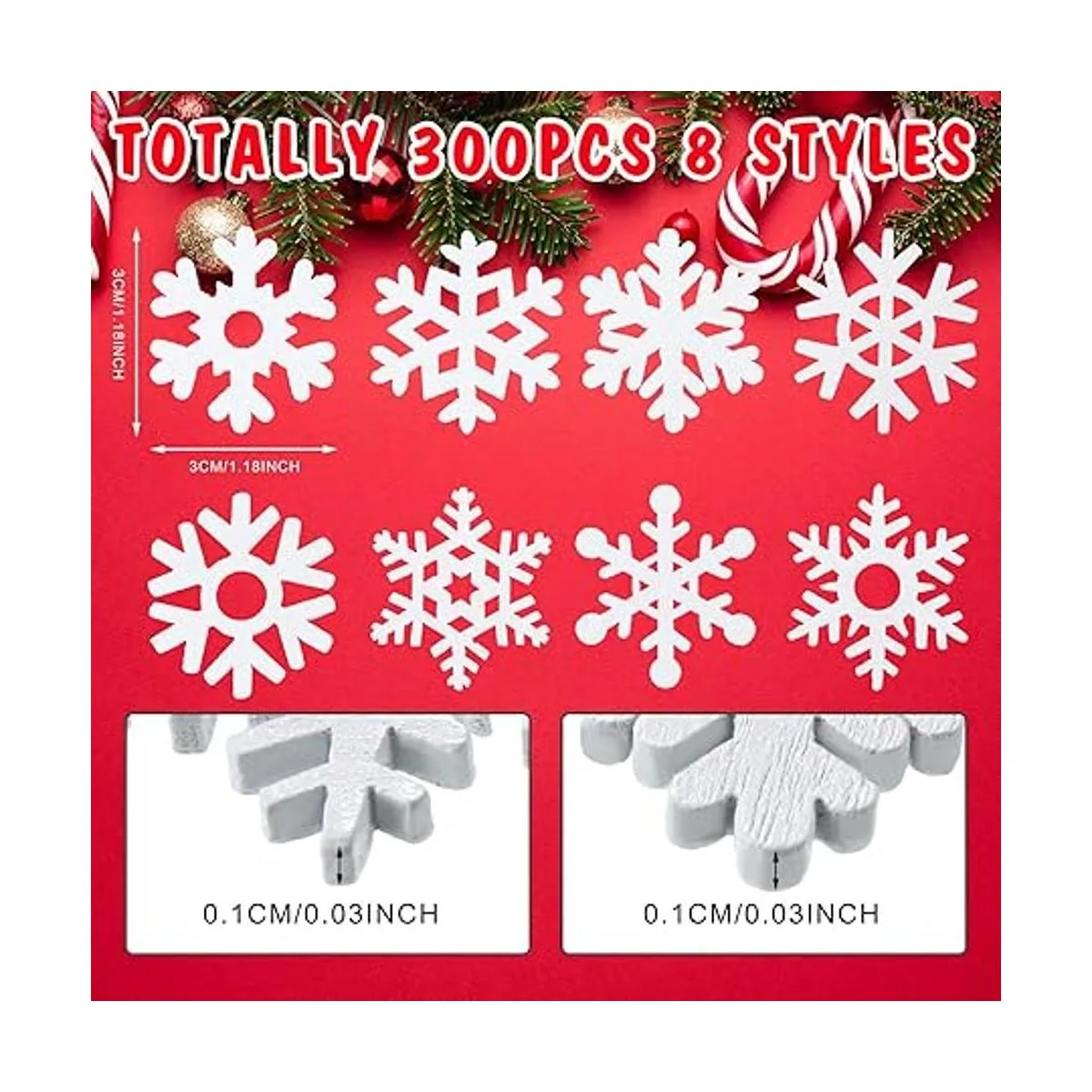 Cantidad suficiente: recibirás 300 piezas de rodajas de madera de copo de nieve en 8 estilos diferentes, que la cantidad suficiente puede satisfacer tus necesidades de decoración del hogar y fiesta