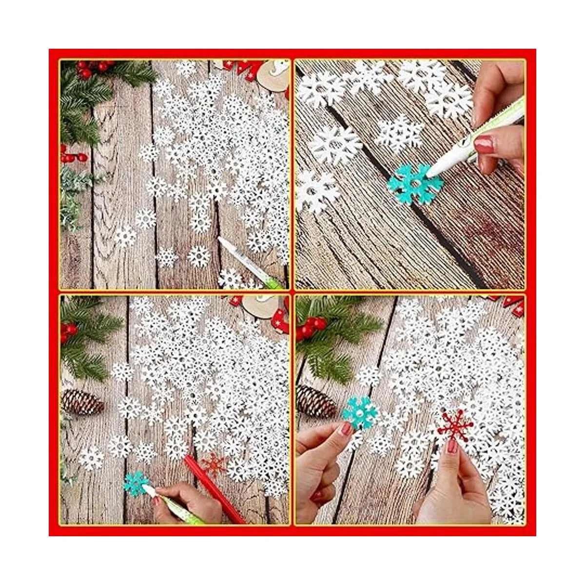 300 piezas de copos de nieve de madera, etiquetas de copos de nieve de Navidad, adornos de copo de nieve blancos, adornos de copo de nieve, recortes de madera para manualidades, árbol de Navidad, decoración de mesa colgante Cute