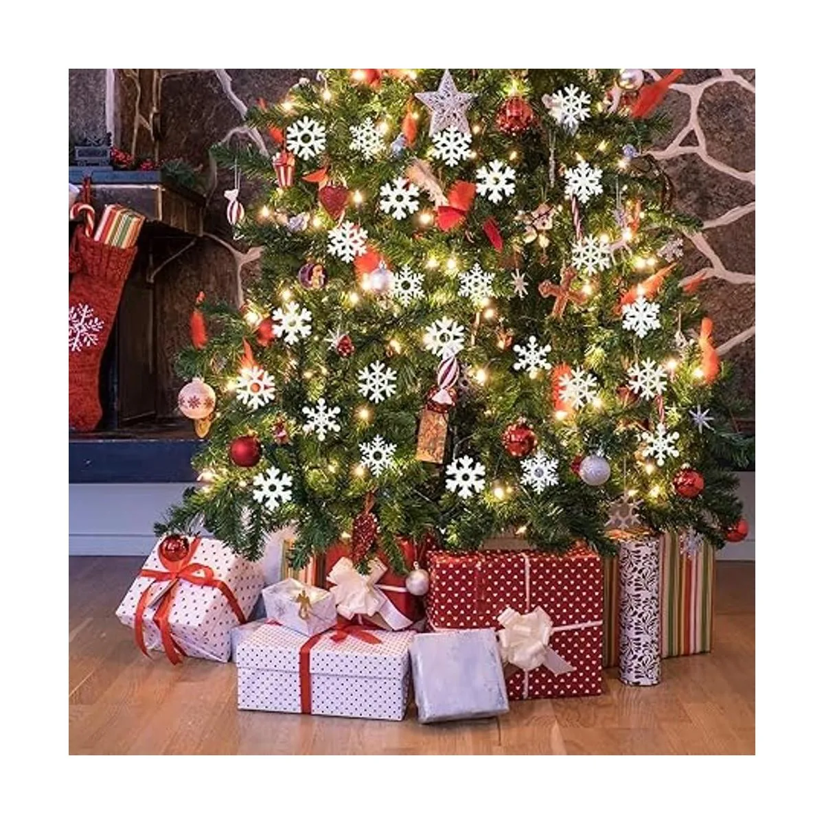 Multifunción: estas rodajas de madera de copo de nieve de Navidad se pueden colocar directamente en la mesa de postre, suelo, escritorio, mostrador, o pegar o colgar en el árbol, pared, puerta, ventana, techo, coche para decorar tu sala de estar, dormitorio, oficina, escuela u otros lugares