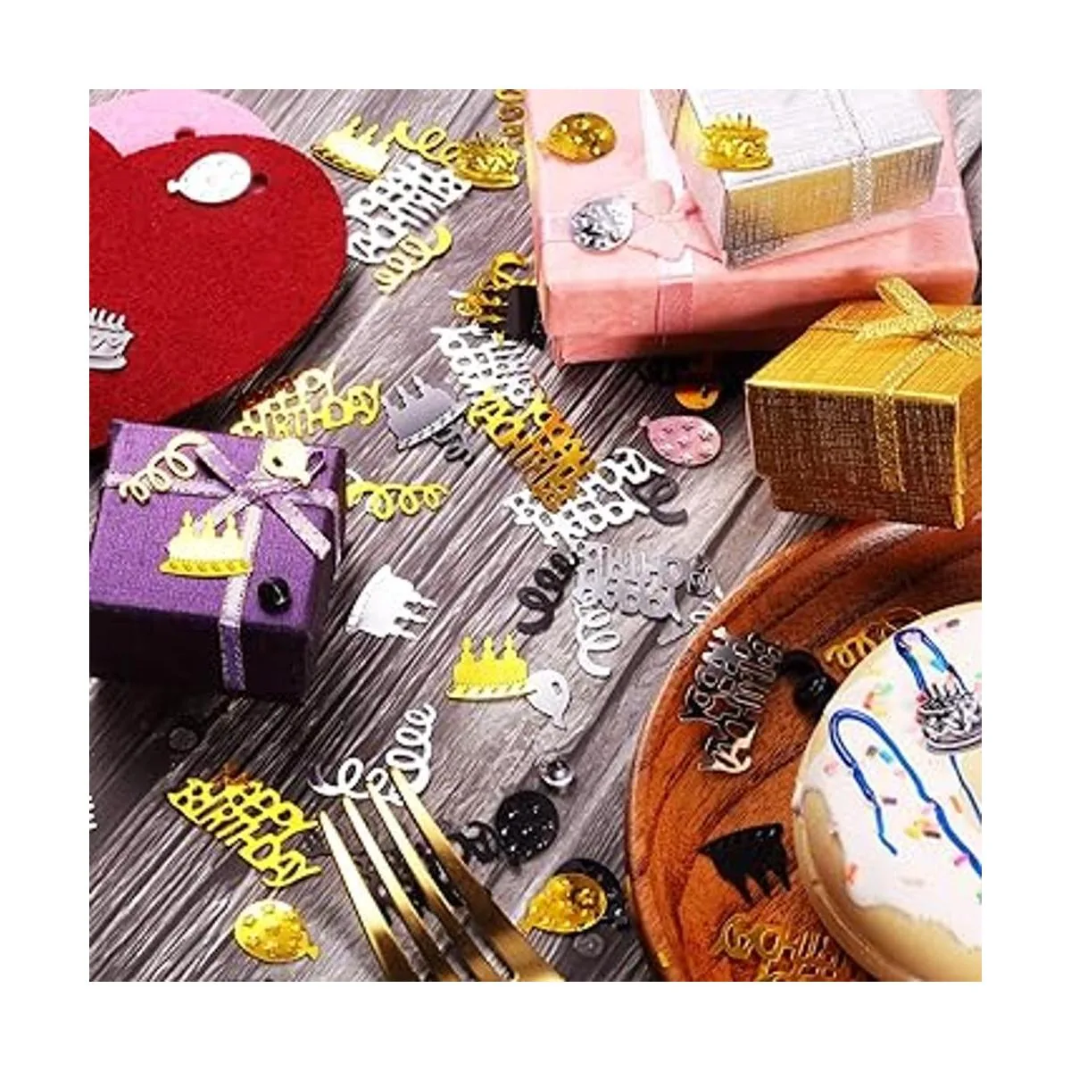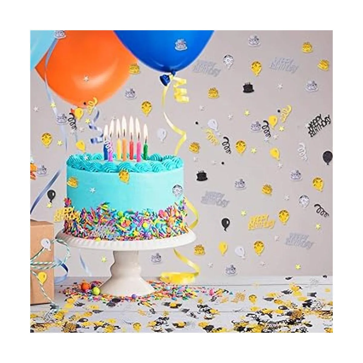 Diversos estilos de confeti: hay feliz cumpleaños, pastel de cumpleaños, forma de globos de confeti, diferentes formas se mezclan, se ven muy brillantes y encantadores, estos bonitos y elegantes confeti dispersos combinados con colores clásicos, que pueden crear un ambiente encantador para tu fiesta, puedes disfrutar del tiempo alegre con tus amigos o familiares