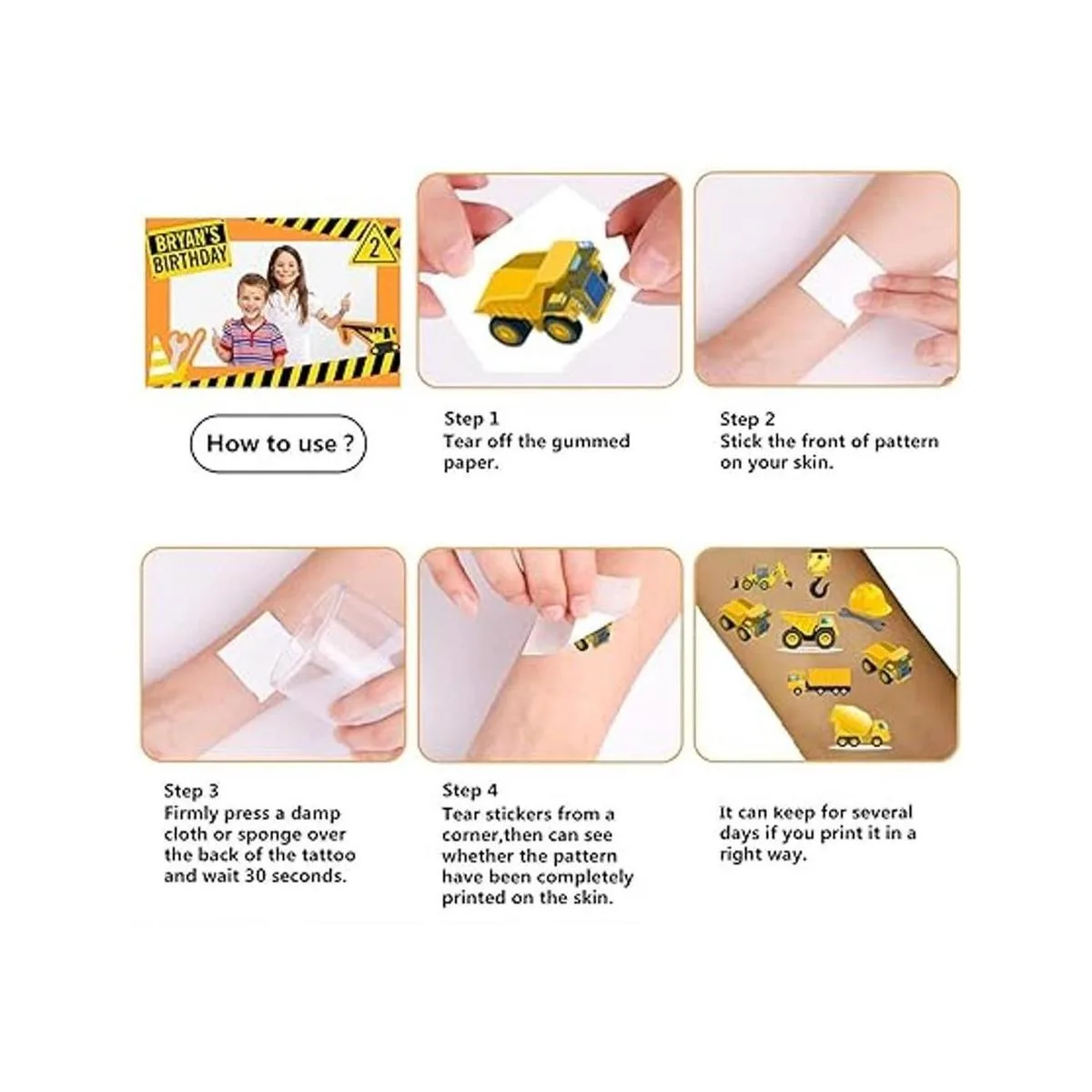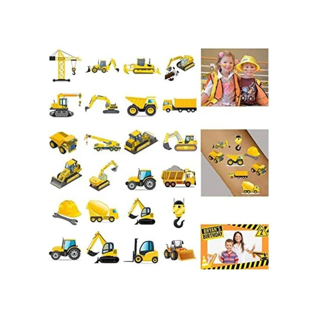 Paquete de 300 tatuajes temporales temáticos de construcción con 30 diseños.