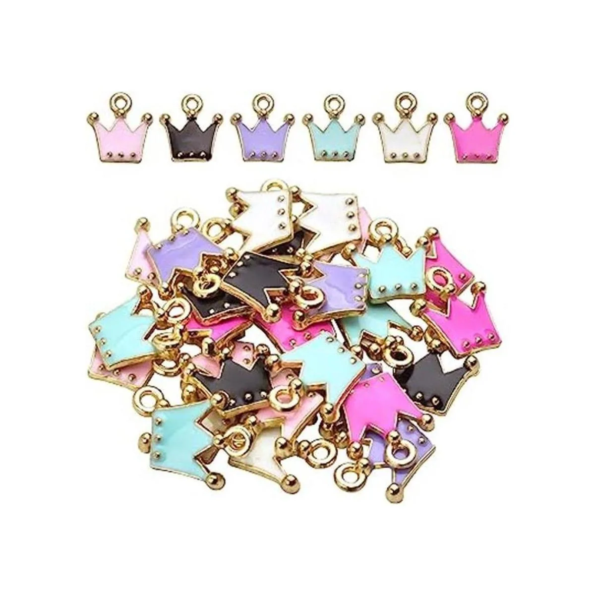 30pcs Chapado en Oro Esmalte Corona Encantos Colgantes Encantadores Multicolor Para Pulsera Collar Artesanía Fabricación De La Joyería Decoración