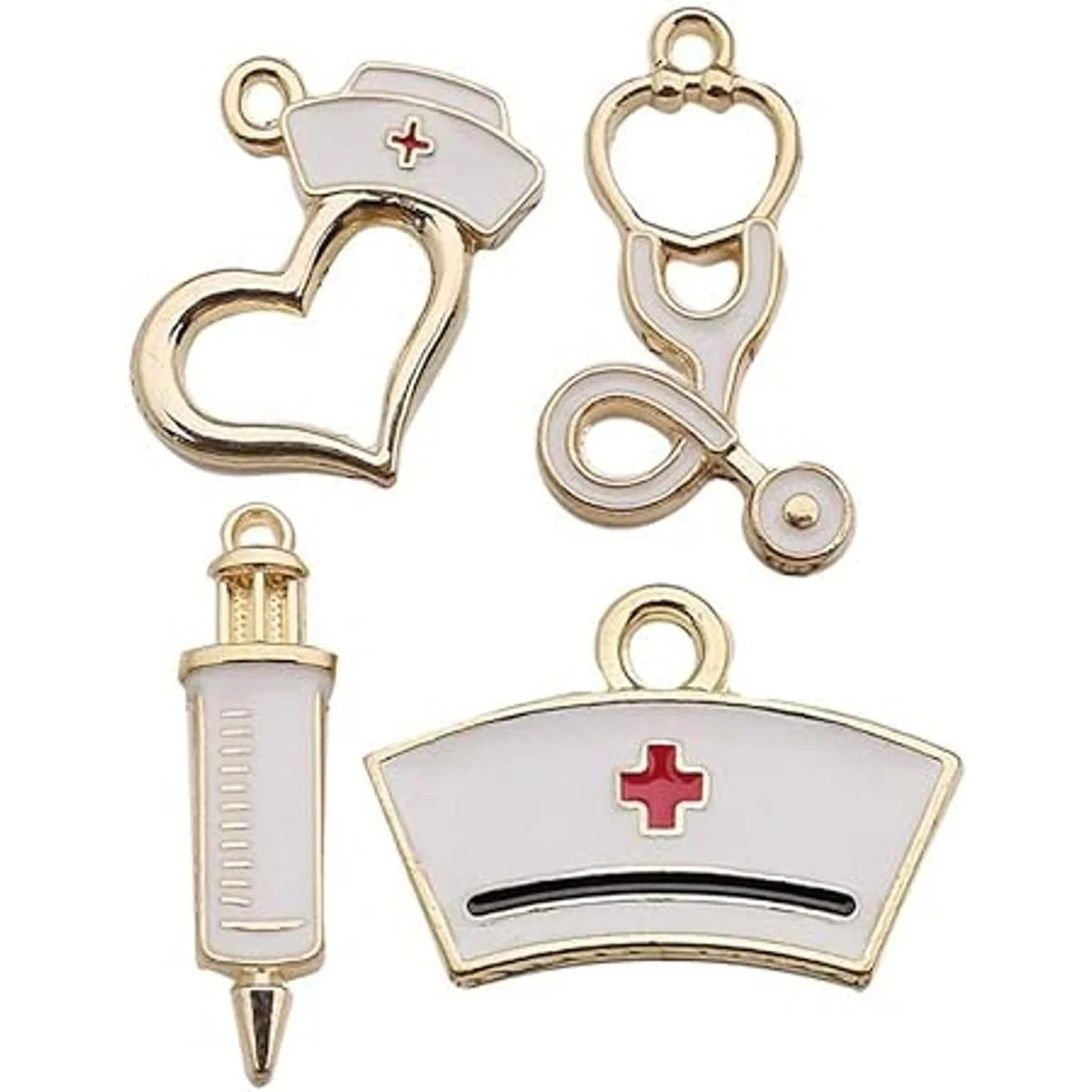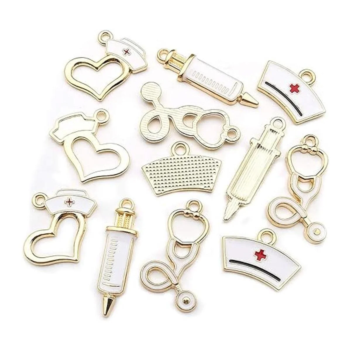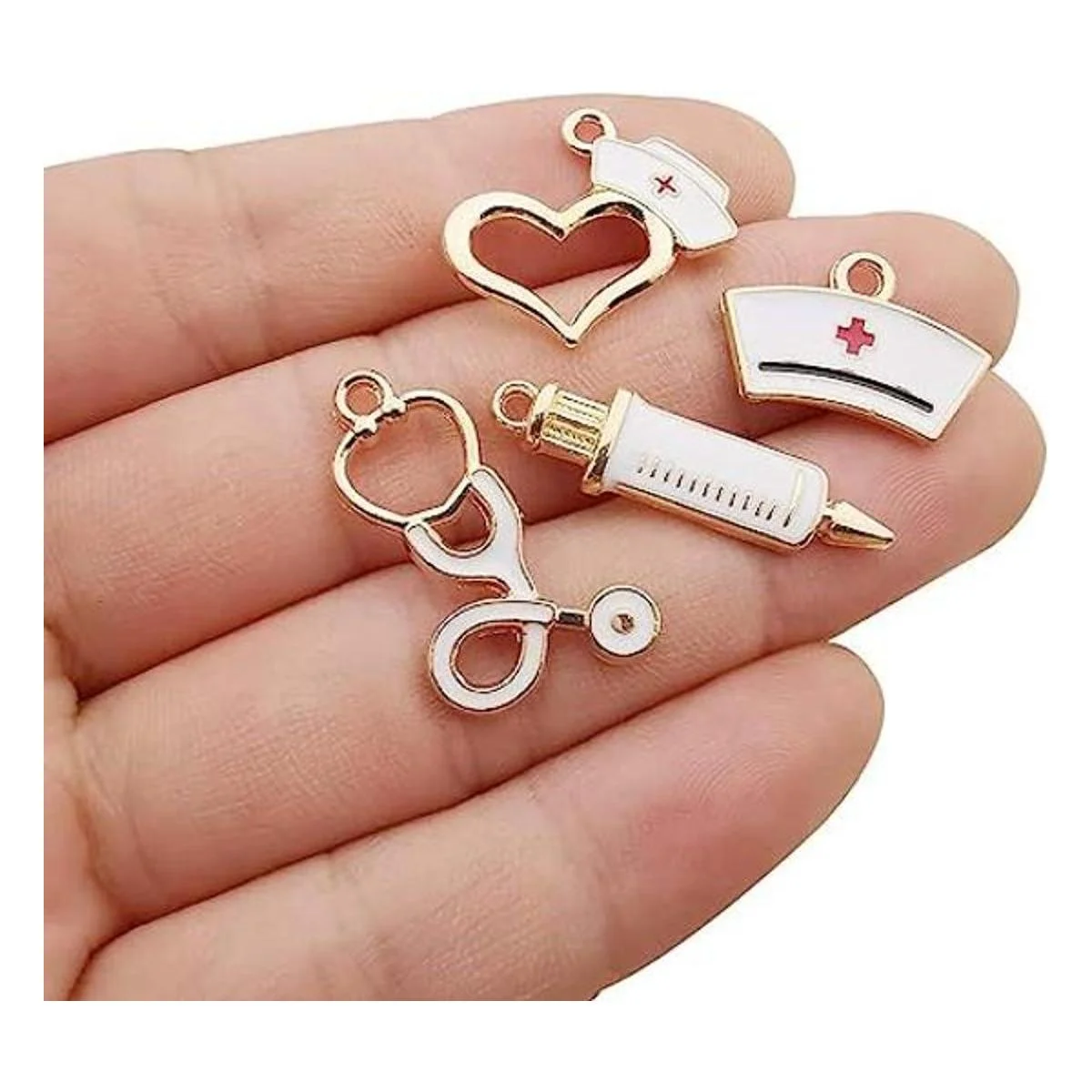 32 dijes chapados en oro para enfermera, estetoscopio, jeringa, casquillo, para hacer joyas, manualidades, hallazgos, accesorio para bricolaje collar pulsera M430