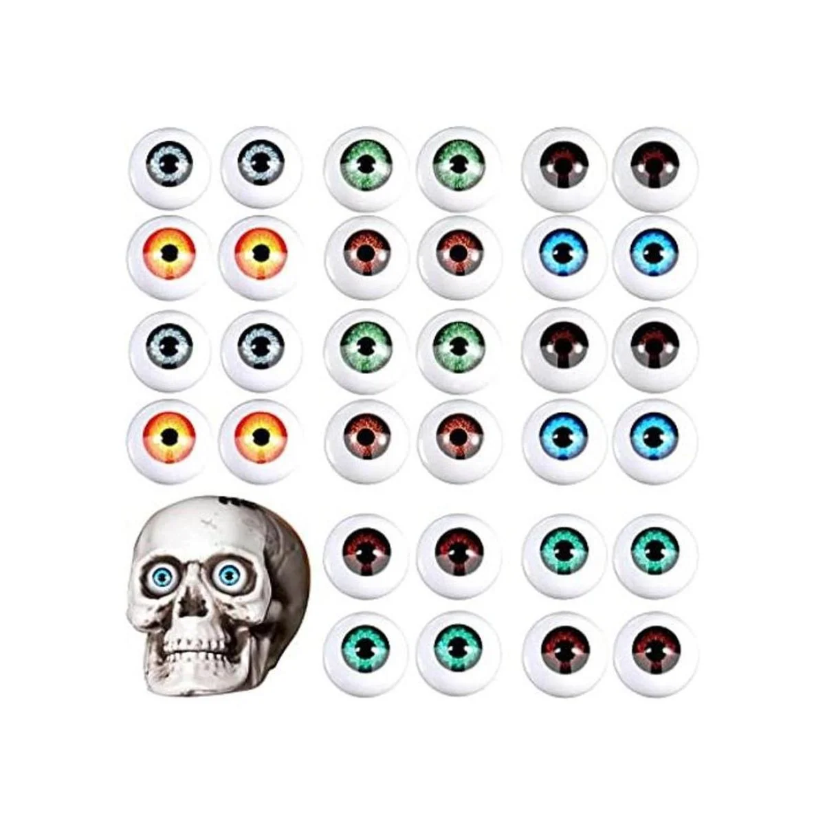 32 globos oculares de Halloween de plástico, medios ojos espeluznantes, accesorios de terror para Halloween, fiesta de truco o trato, cosplay lindos colores