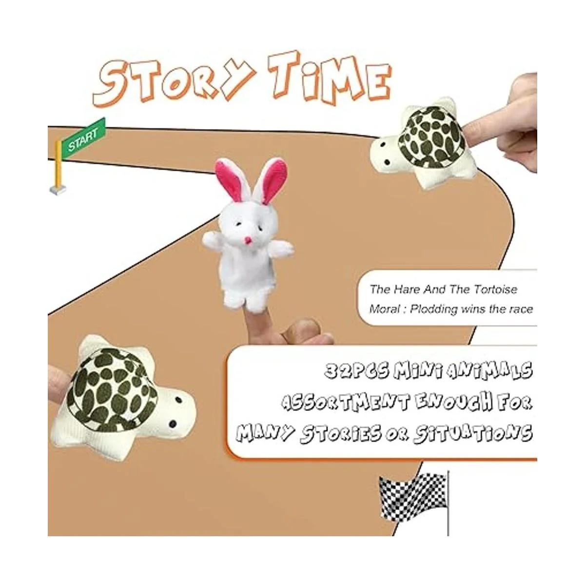 32 marionetas de dedo para niños pequeños, animales de dibujos animados, marionetas con tema de zoológico, marionetas de terciopelo suave para decoración de Pascua, niños y adultos, recuerdos de fiesta de recompensas escolares