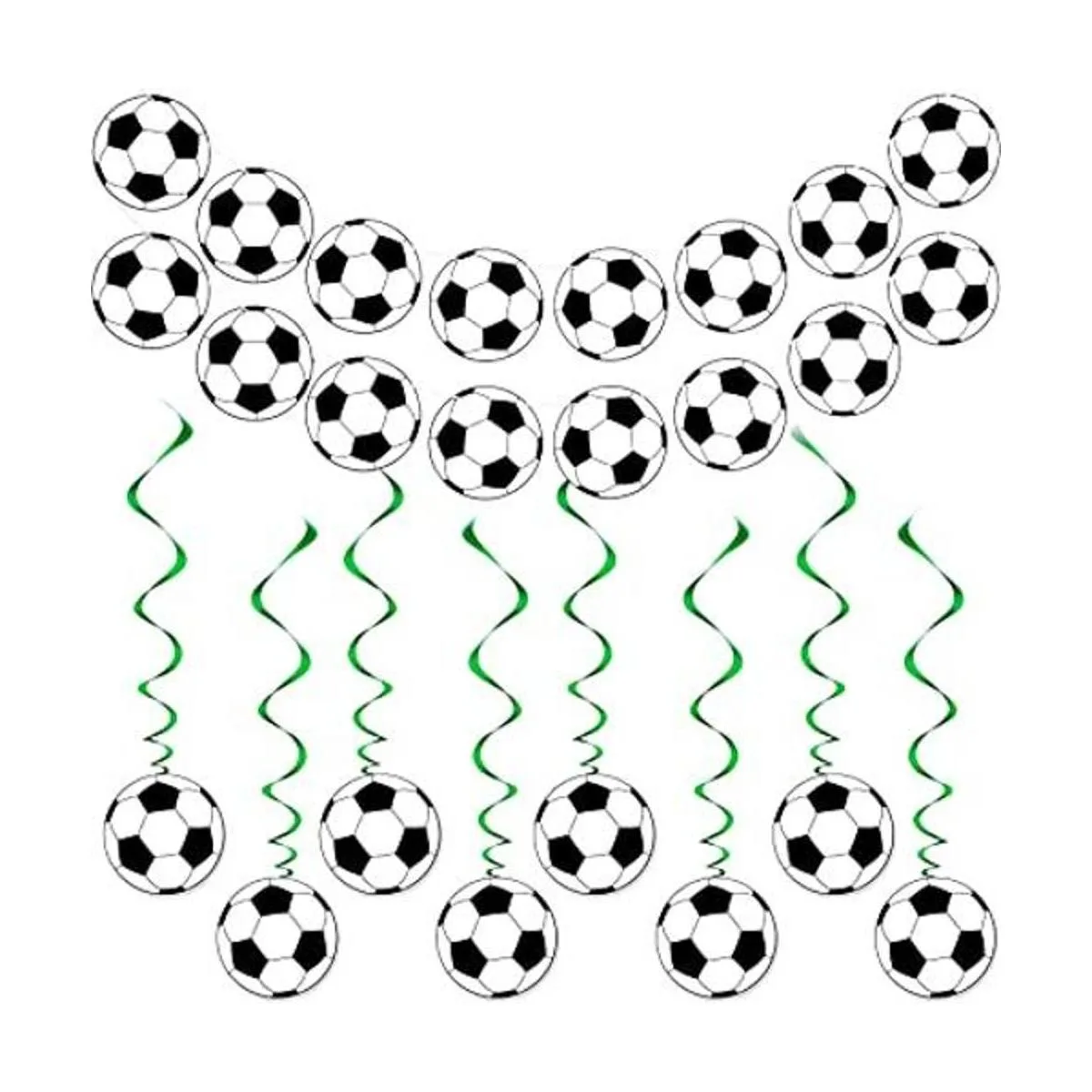32 piezas de decoraciones de fiesta de fútbol incluyen 2 guirnaldas de pancartas de fútbol, 15 piezas de remolinos colgantes de fútbol, suministros de fiesta, 15 piezas de tarjetas de decoración de patrones de fútbol para niños, clubes de fútbol para fiestas de baby shower