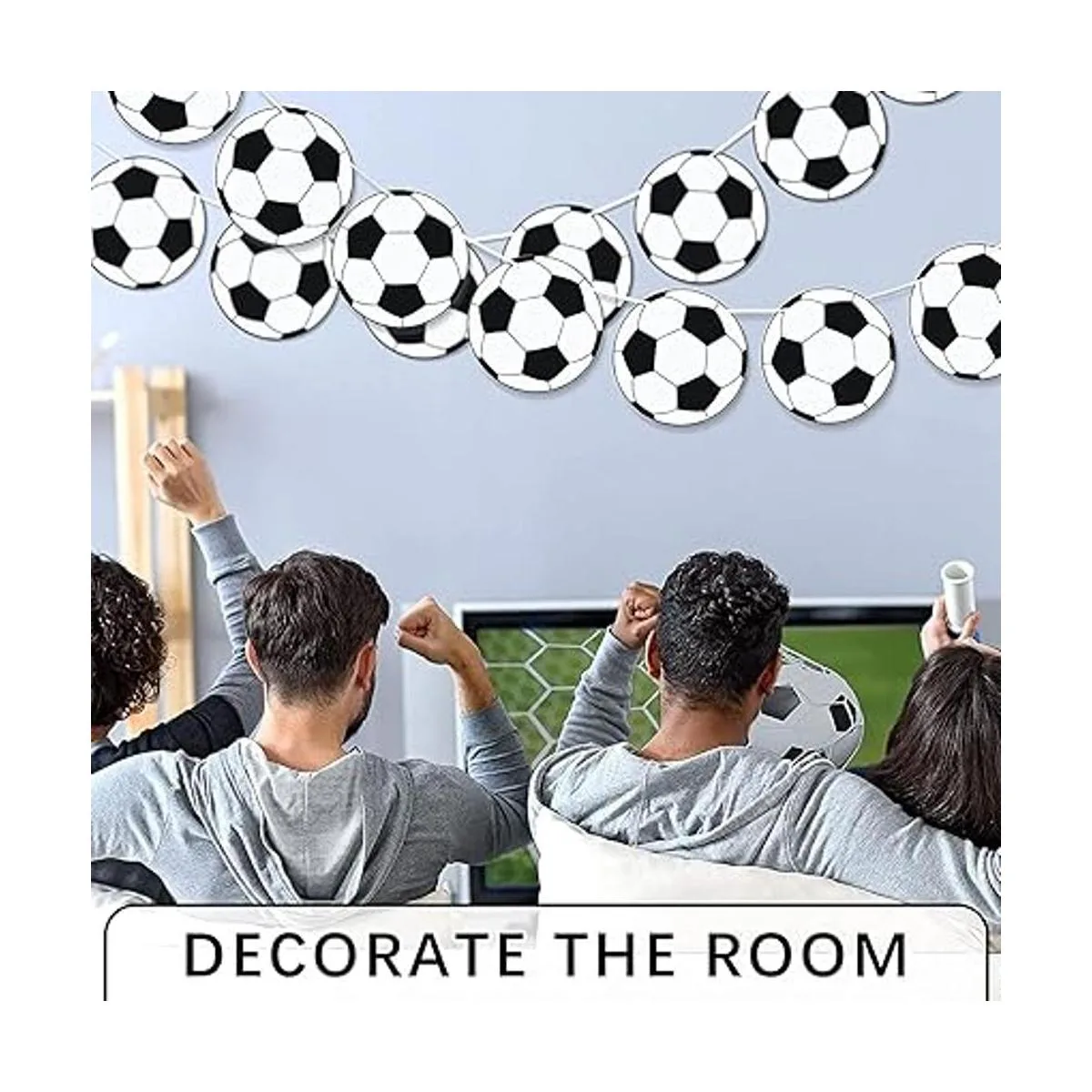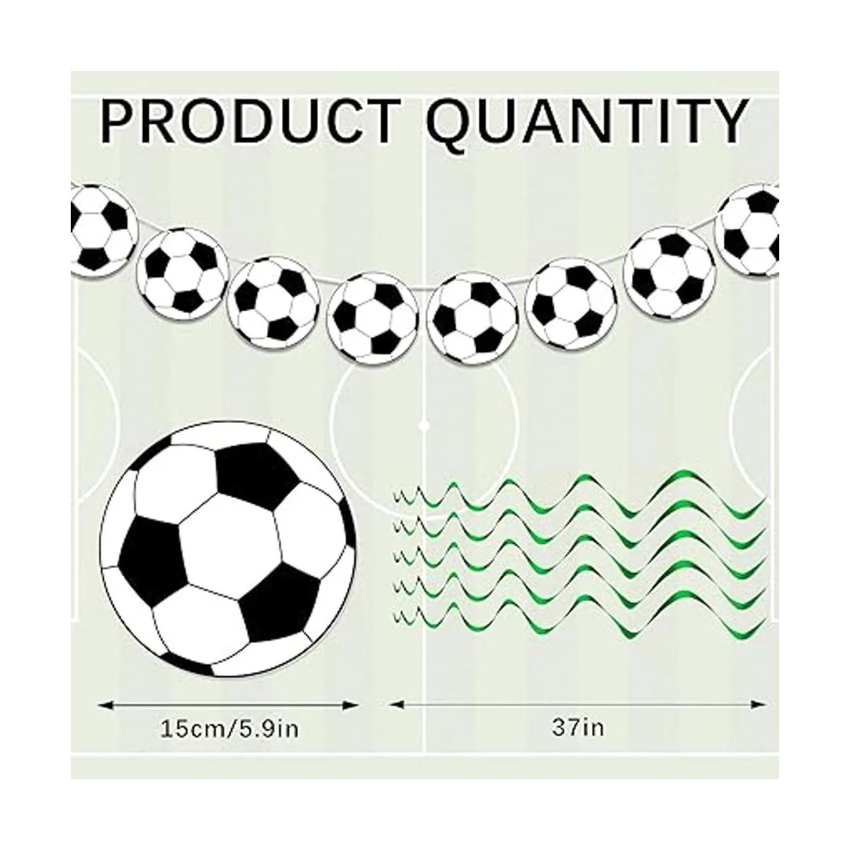 Contenido del paquete: hay 2 guirnaldas de pancarta de fútbol, cada pancarta tiene 8 tarjetas de patrón de fútbol y 15 remolinos colgantes de fútbol, suficientes para satisfacer tus preferencias personales y necesidades de decoración, para preparar una fiesta temática de fútbol inolvidable