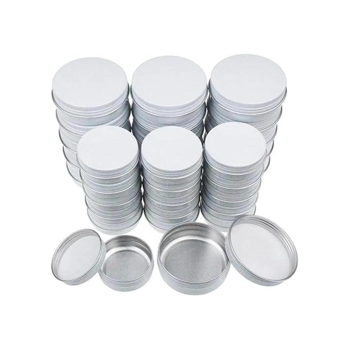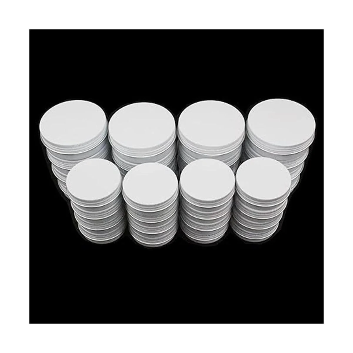 32 piezas de tapa de rosca redonda de aluminio latas de metal vacíos tarros de especias bálsamo labial velas contenedores de almacenamiento latas de viaje, 2oz y 1oz tamaños mixtos blanco