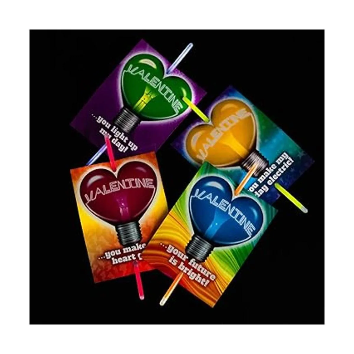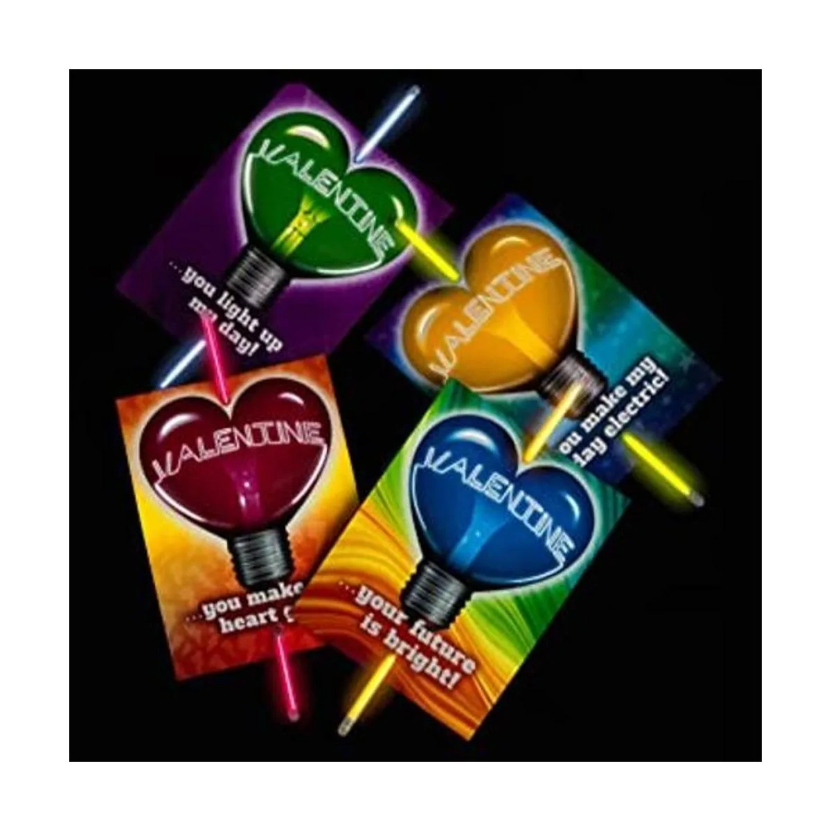 32 tarjetas de día de San Valentín de neón con 32 varillas de brillo para tarjetas de San Valentín y recuerdo de fiesta de San Valentín