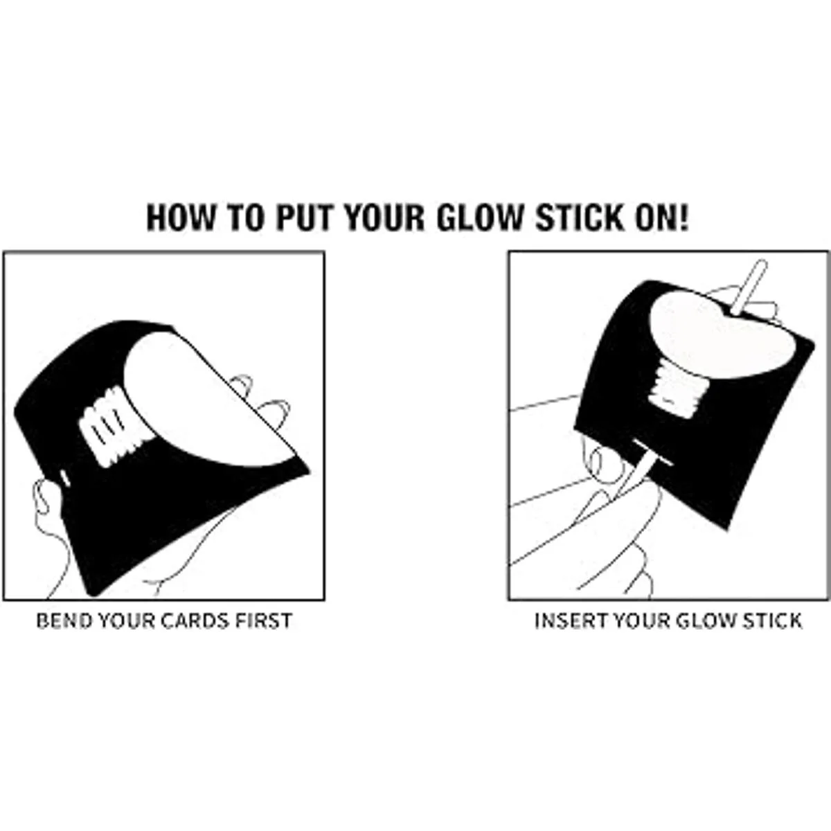 Juego completo de gran valor. Nuestro paquete Fun Glow incluye 32 tarjetas 4 diseños y 32 varillas luminosas adjuntas en 4 colores. Los colores de los palillos brillantes son naranja, azul, rosa y amarillo.