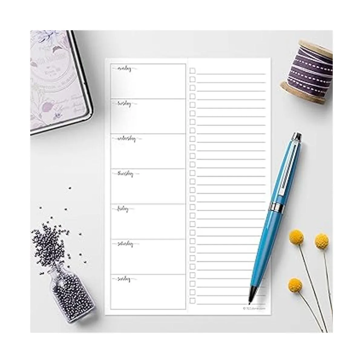 Planificador y lista de verificación en uno: este bloc de notas de planificación semanal incluye un planificador a la izquierda y una lista de verificación de arranque a la derecha. Planifica tu semana, escribe tus tareas y tareas pendientes, luego toma la lista para ir.