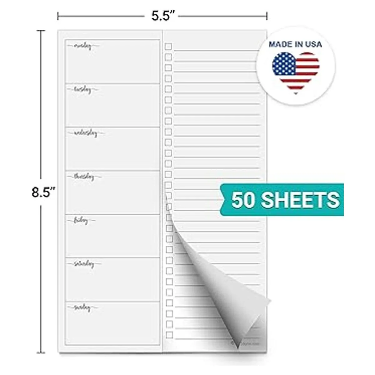321Done Planificador semanal con bloc de notas de lista de verificación 50 hojas 5.5 x 8.5 pulgadas pequeño Fabricado en Estados Unidos Dos columnas, cuaderno minimalista de planificación de tareas pendientes, insertos de horario de planificación simple
