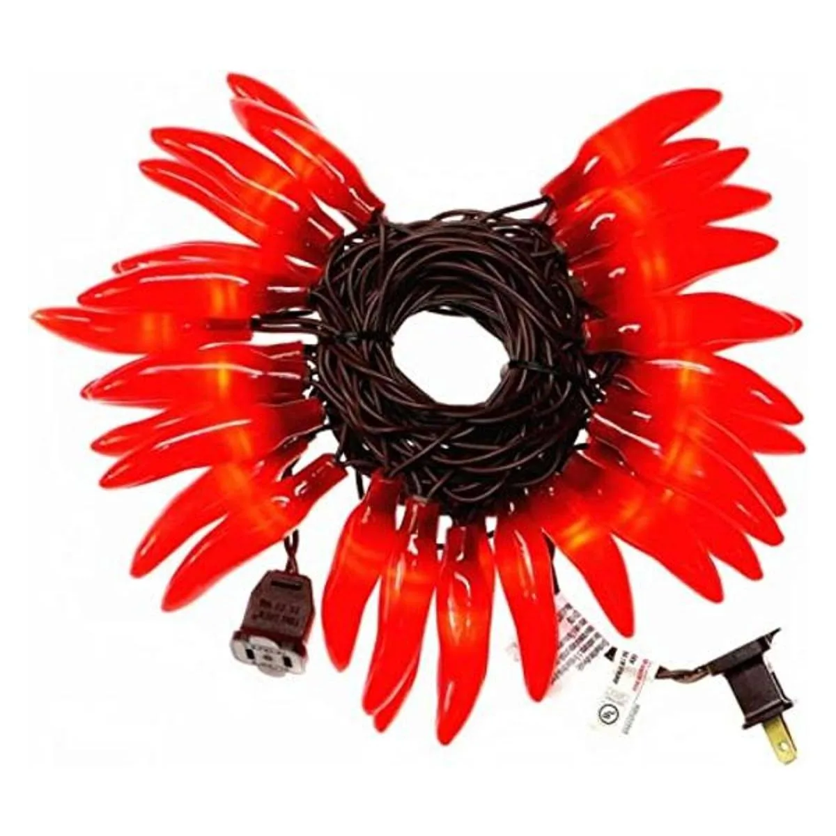 35 luces de decoración de pimienta roja con alambre marrón de 18 pies, juegos de luces LED de chile de grado comercial, para sala de estar, cocina, jardín.