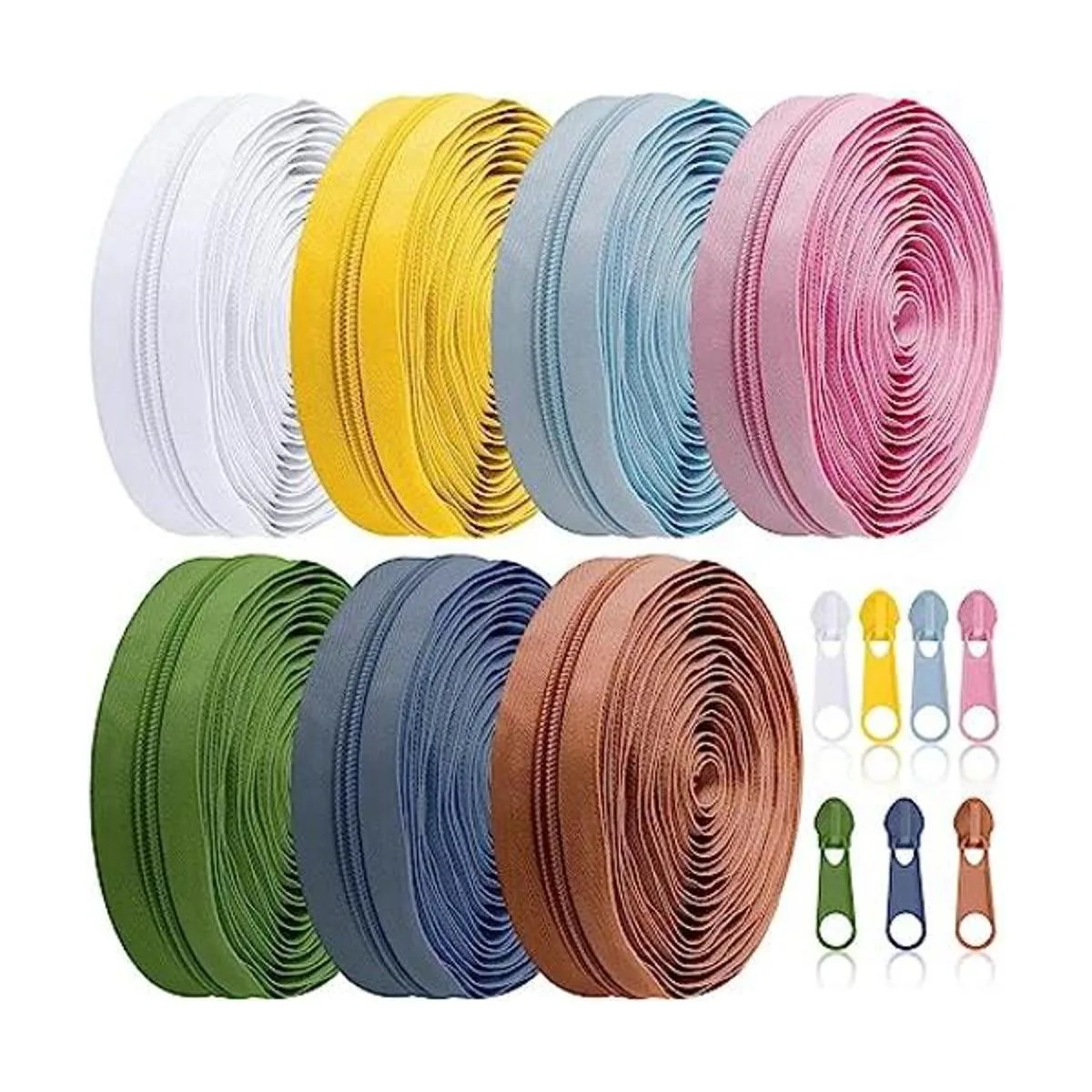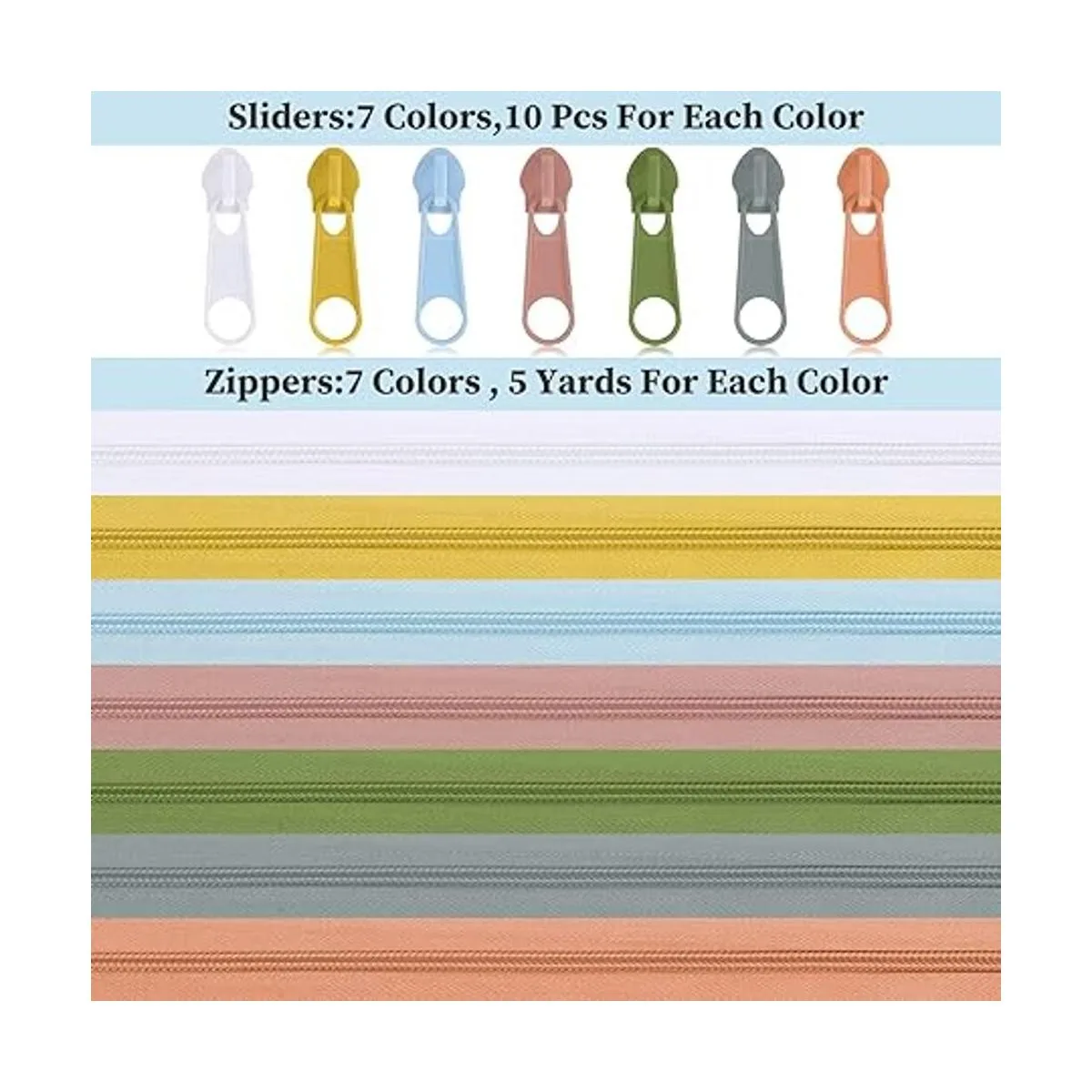 35 yardas7 piezas de colores surtidos, 5 cremalleras de bobina de nailon, cremalleras de costura mixtas con 70 cabezales de cremallera deslizantes para manualidades, costura, suministros de manualidades colores cálidos