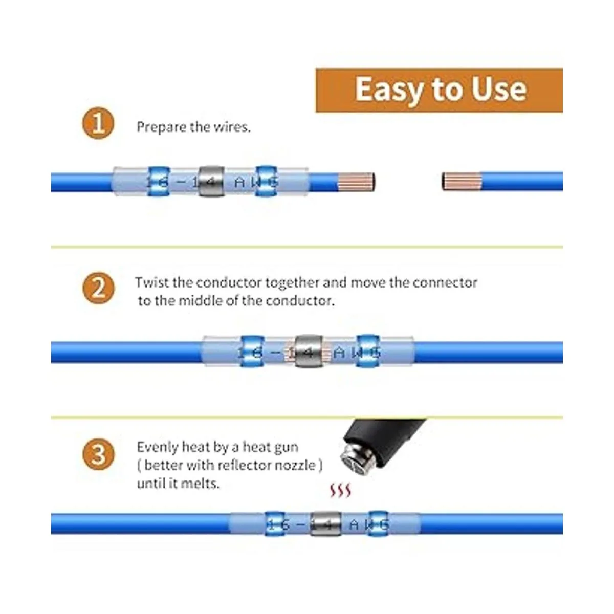 Fácil de usar: los conectores de alambre termorretráctil se pueden conectar con solo una de calor, no se necesita herramienta de crimpado o máquina de soldadura.