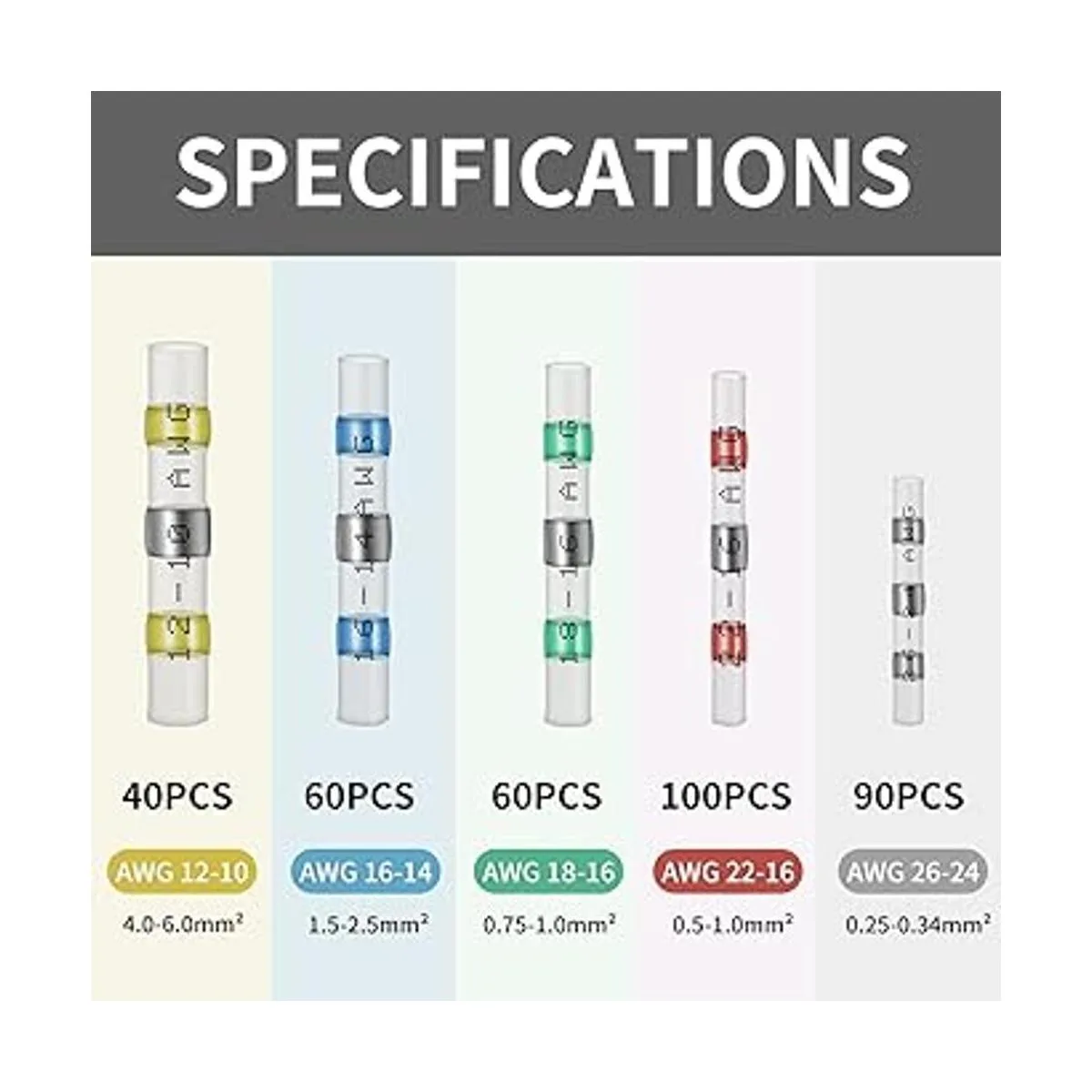 350 conectores de alambre de sellado de soldadura, kit de conectores de tope termocontraíbles, cableado marino impermeable, terminales de empalme de cable eléctrico para barco, automóvil, caravana y remolque