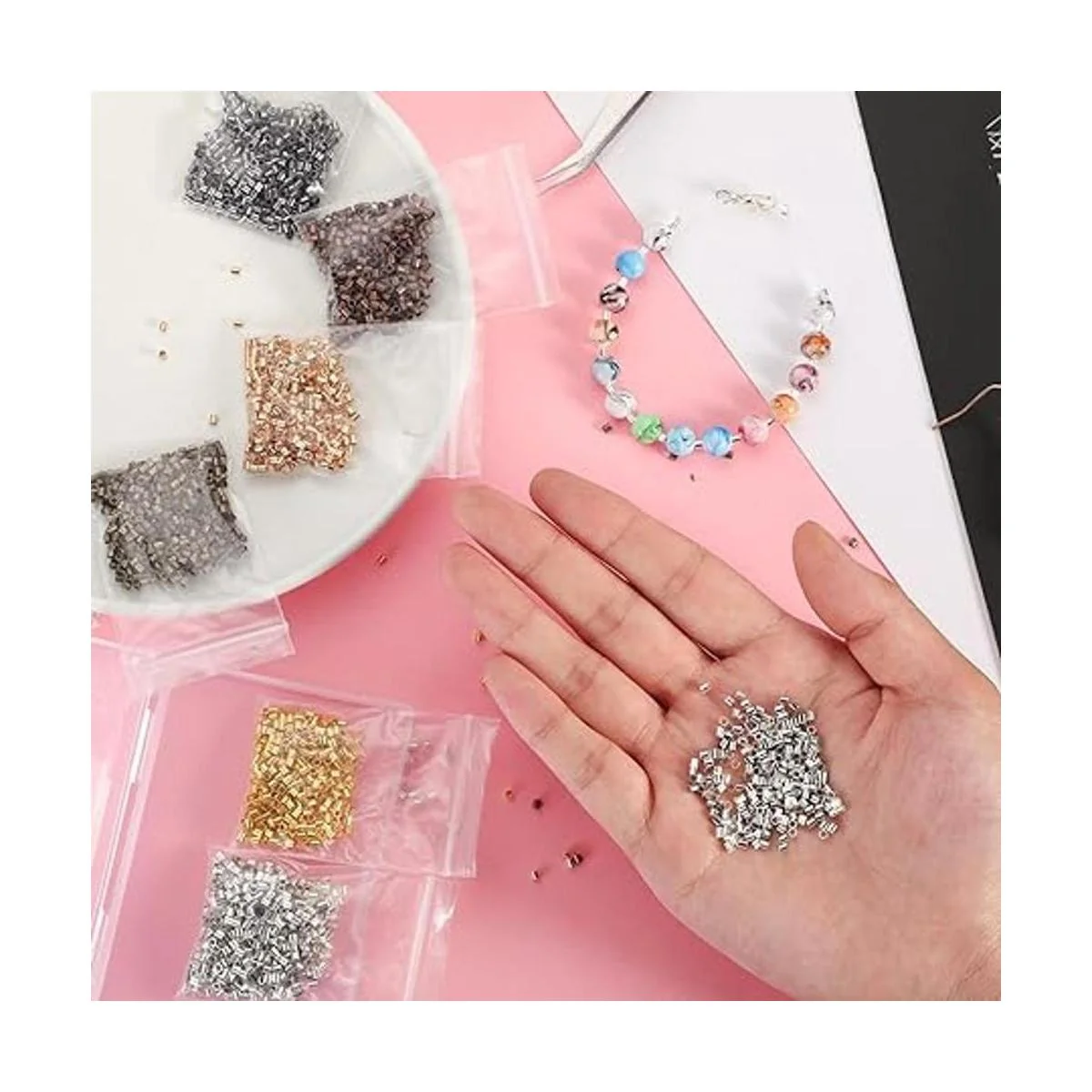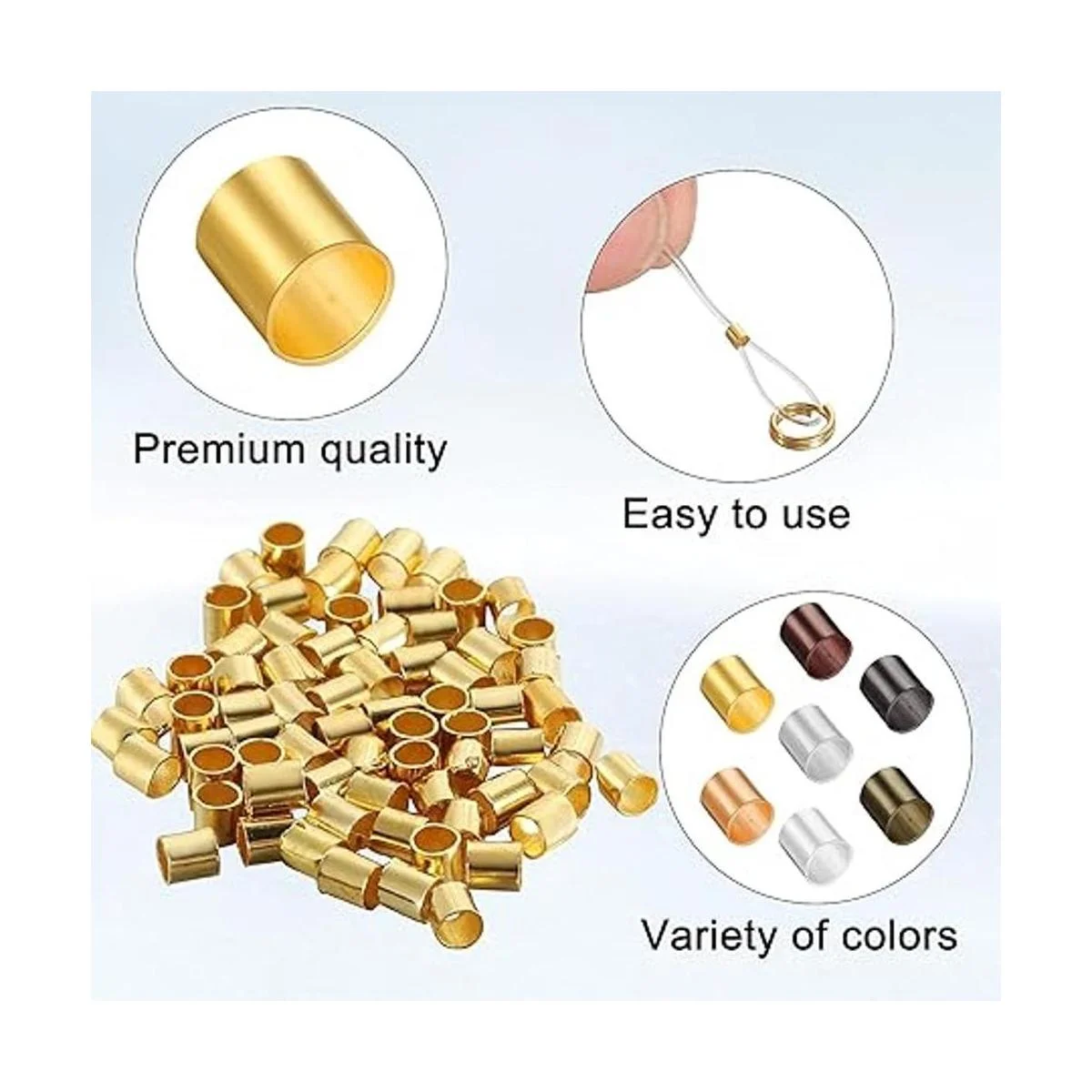 Herramientas funcionales de bricolaje: estas cuentas de crimpado de tubo se pueden aplicar para cubrir los nudos en el extremo de collares o pulseras de cuentas, los accesorios básicos para cuentas; además, se pueden aplicar con un solo anillo, cierre de mosquetón y otros accesorios, adecuado para diferentes proyectos hechos a mano
