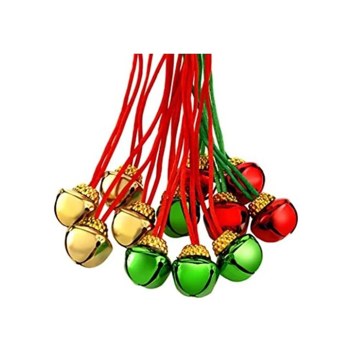 36 collares de campana de Navidad, collares de Navidad con cintas para accesorios de fiesta de vacaciones, relleno de calcetines dorado, rojo, verde, Cuero, Acero y cuerda