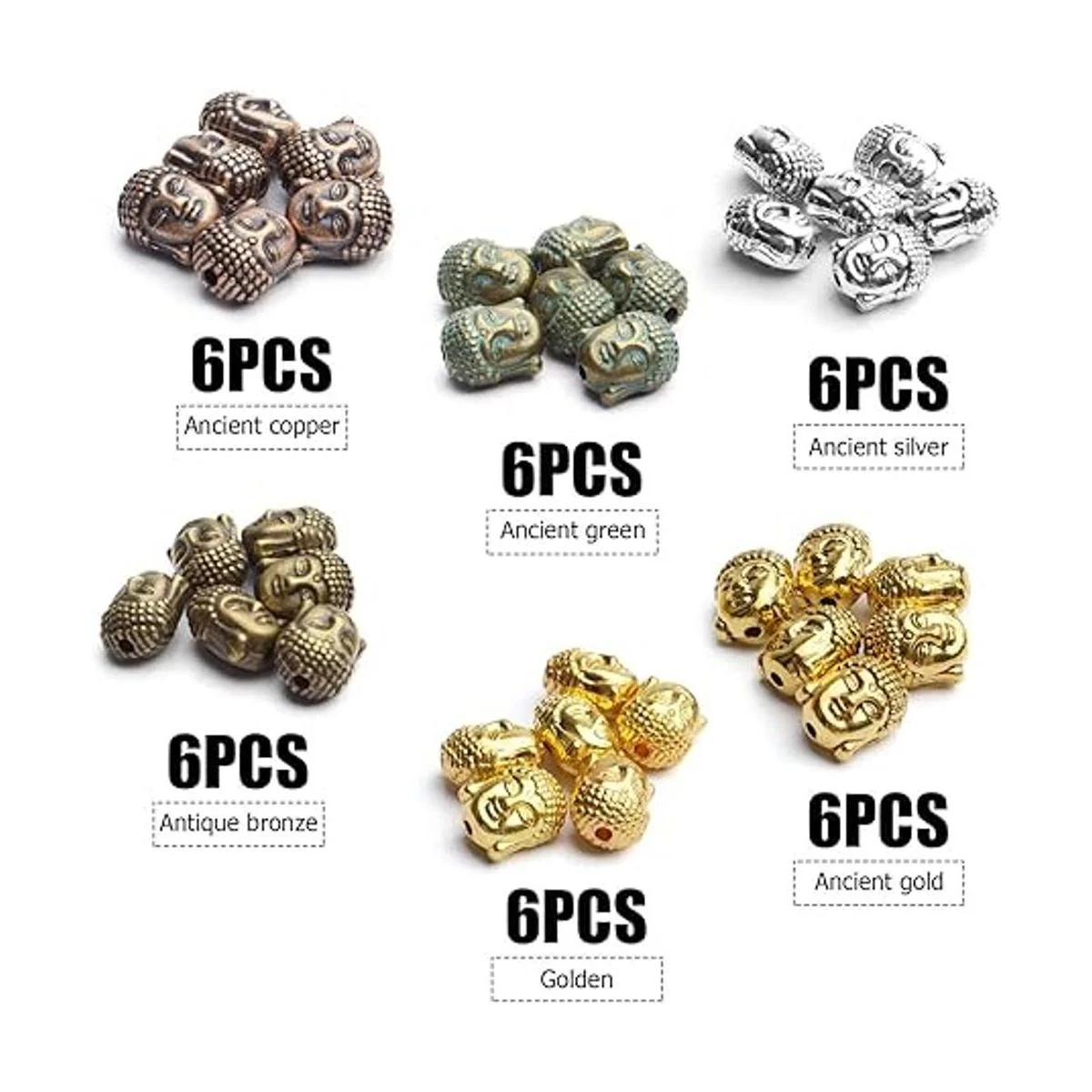 Cantidad suficiente: recibirás 36 cuentas de cabeza de Buda en 6 colores, 6 unidades de cada color. Se puede utilizar para añadir complejidad y dimensión a tus patrones de cuentas.