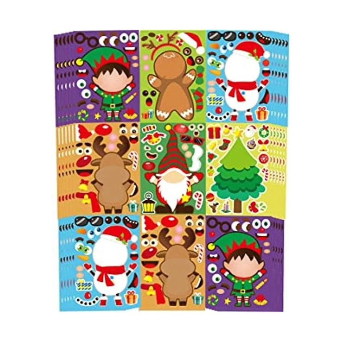 36 hojas de calcomanías para juegos de fiesta de Navidad, haz tu propio gnomo, hombre de jengibre, muñeco de nieve, cara de reno, calcomanías de personajes de Navidad, hojas de calcomanías para mezclar y combinar calcomanías de Navidad, manualidades de Navidad, calcomanías para niños, niñas, recuerdos de fiesta de Navidad