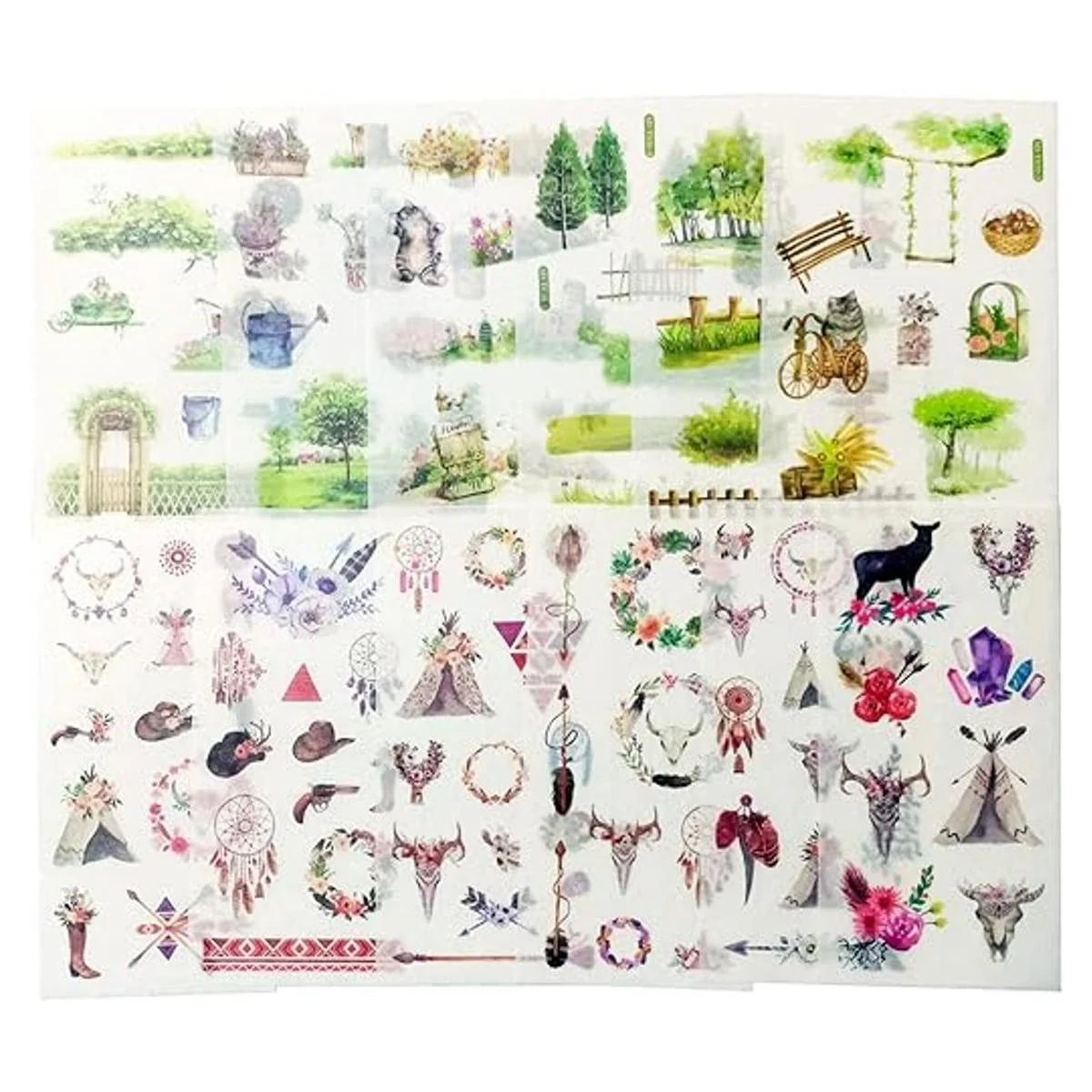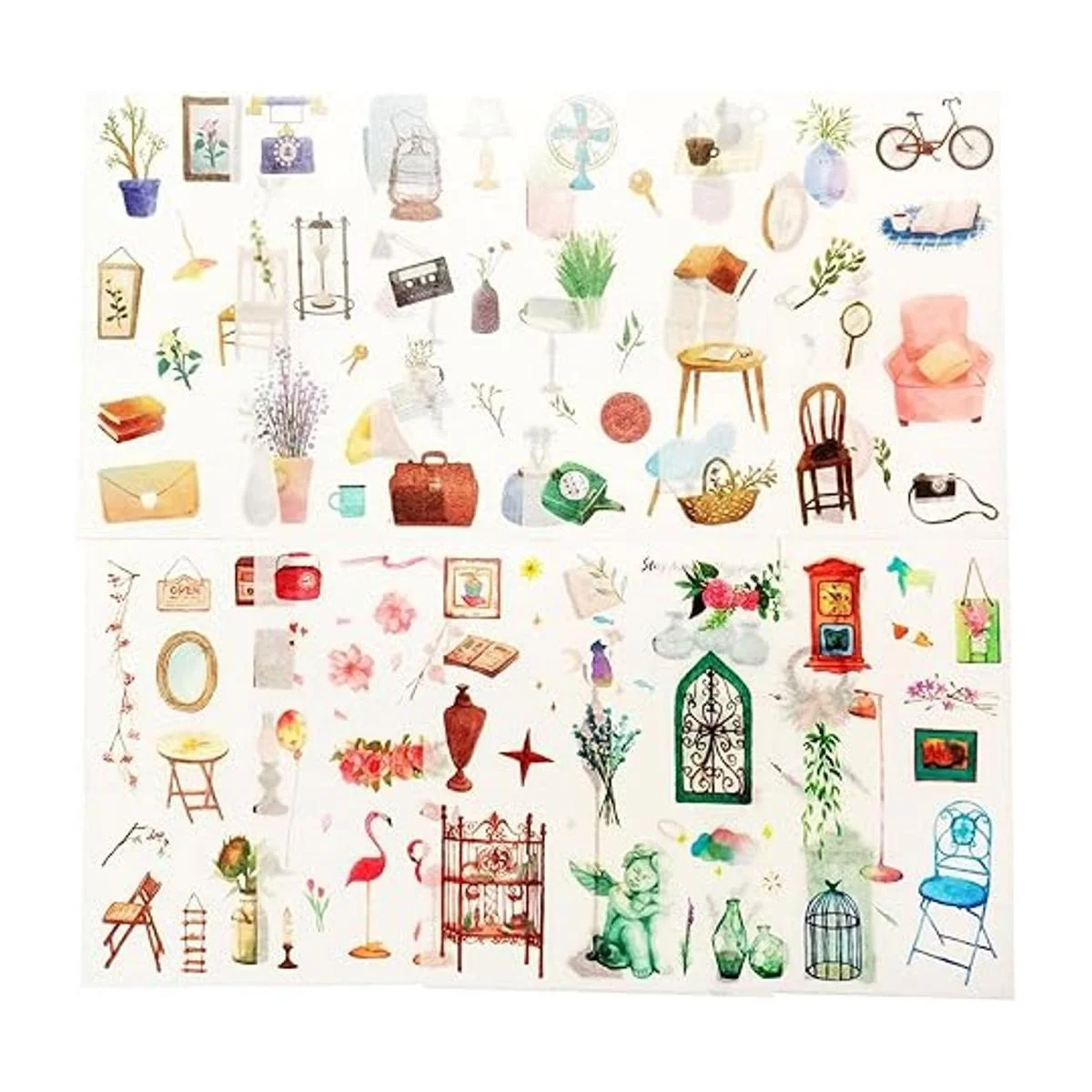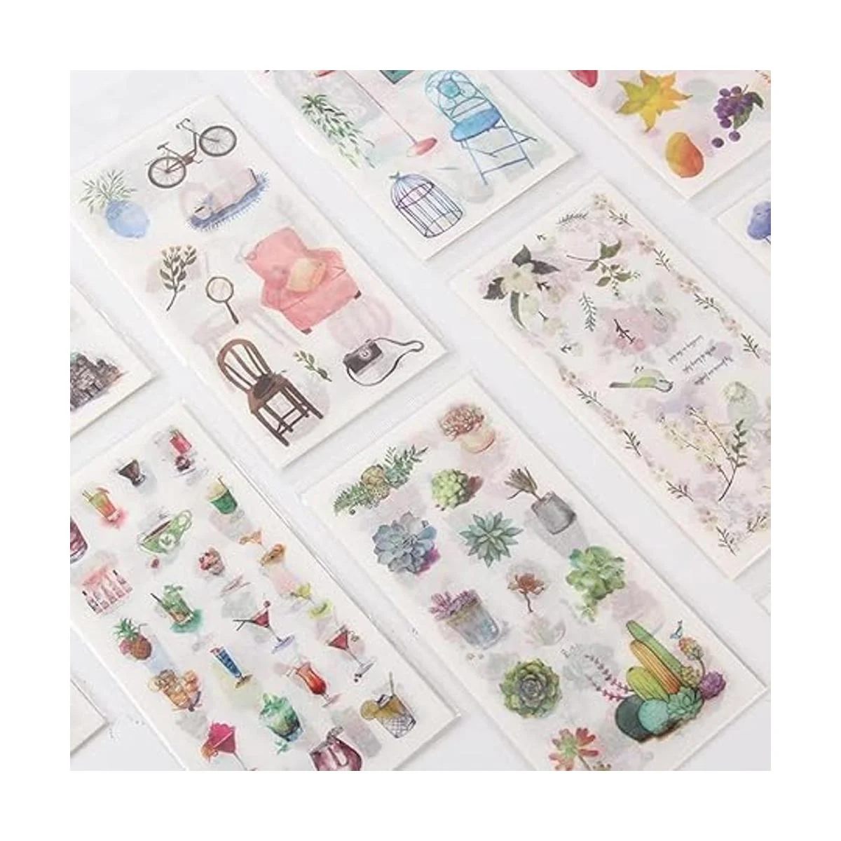 36 hojas de calcomanías Washi de acuarela para diario, lindas flores y pájaros, calcomanías estéticas decorativas para álbumes de recortes, diarios de viñetas, planificadores, calendarios, manualidades para niños y niñas