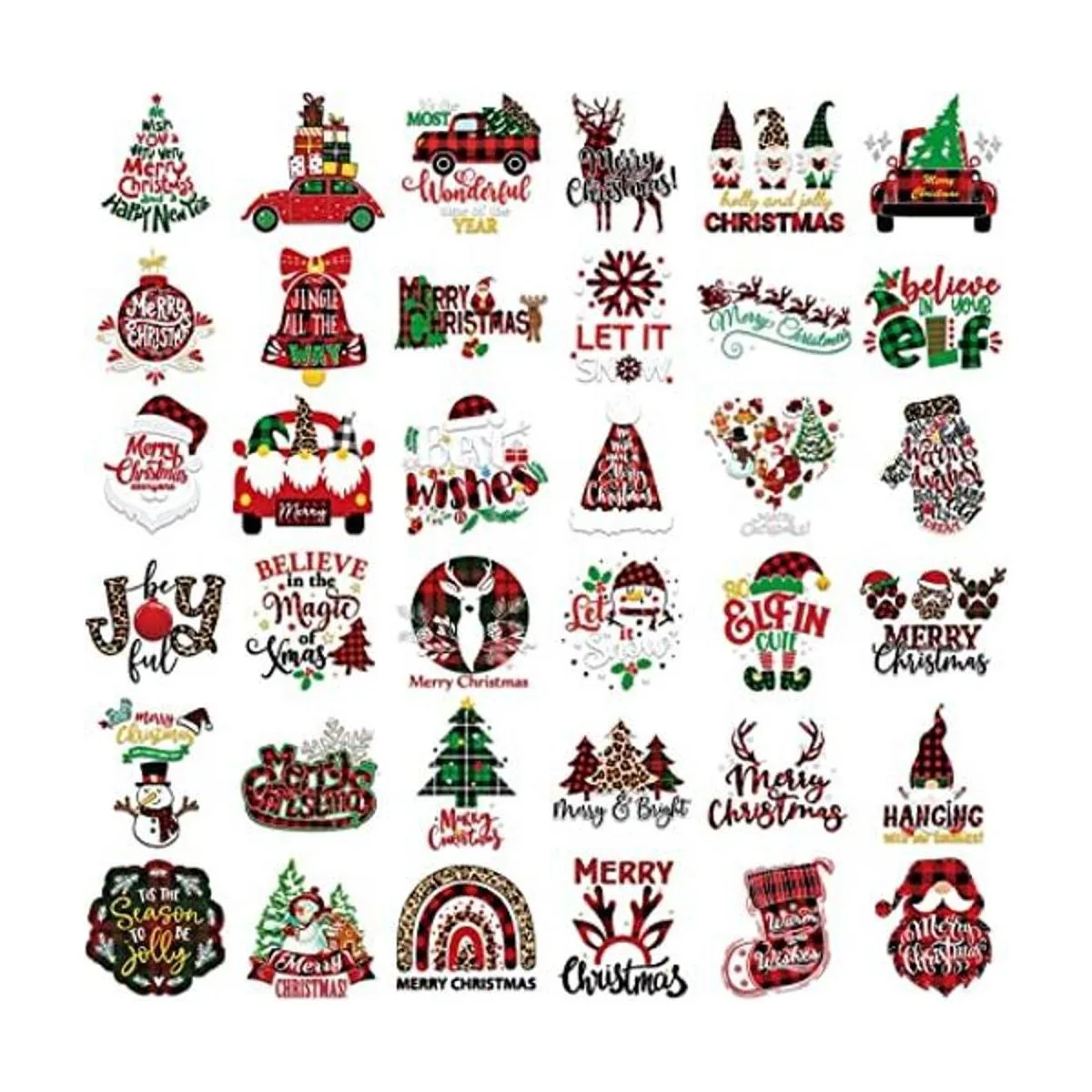 Bonitos y varios patrones: nuestras transferencias de Navidad incluyen diseños divertidos surtidos, como sombreros, coches, campanas, árboles de Navidad, alce, Papá Noel, muñeco de nieve y algunas palabras; también hay patrones clásicos de cuadros de búfalo, añadiendo un ambiente festivo para ti