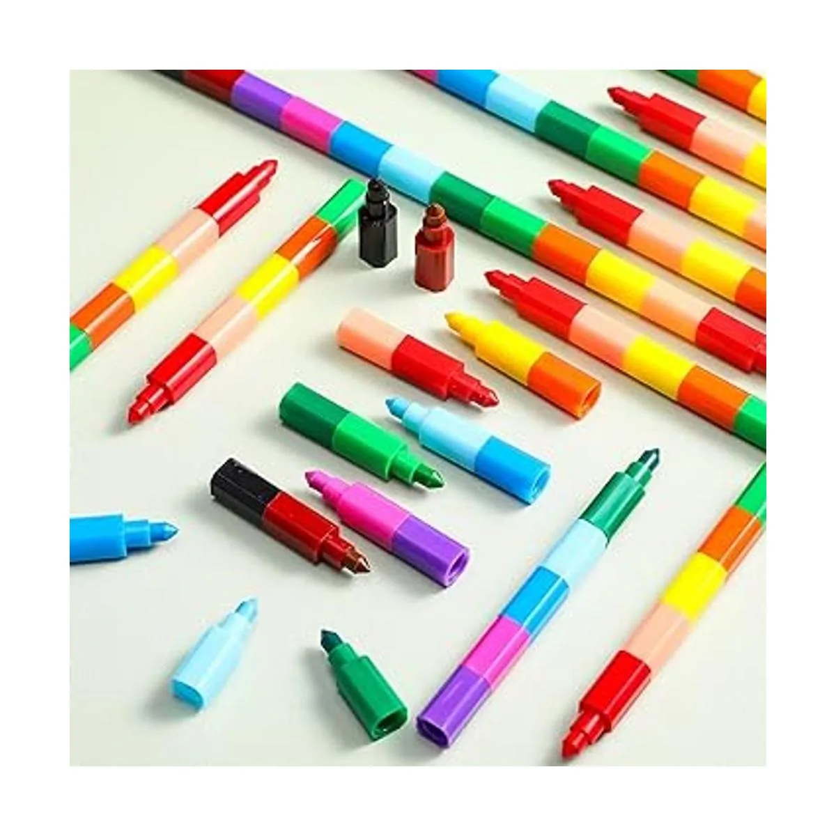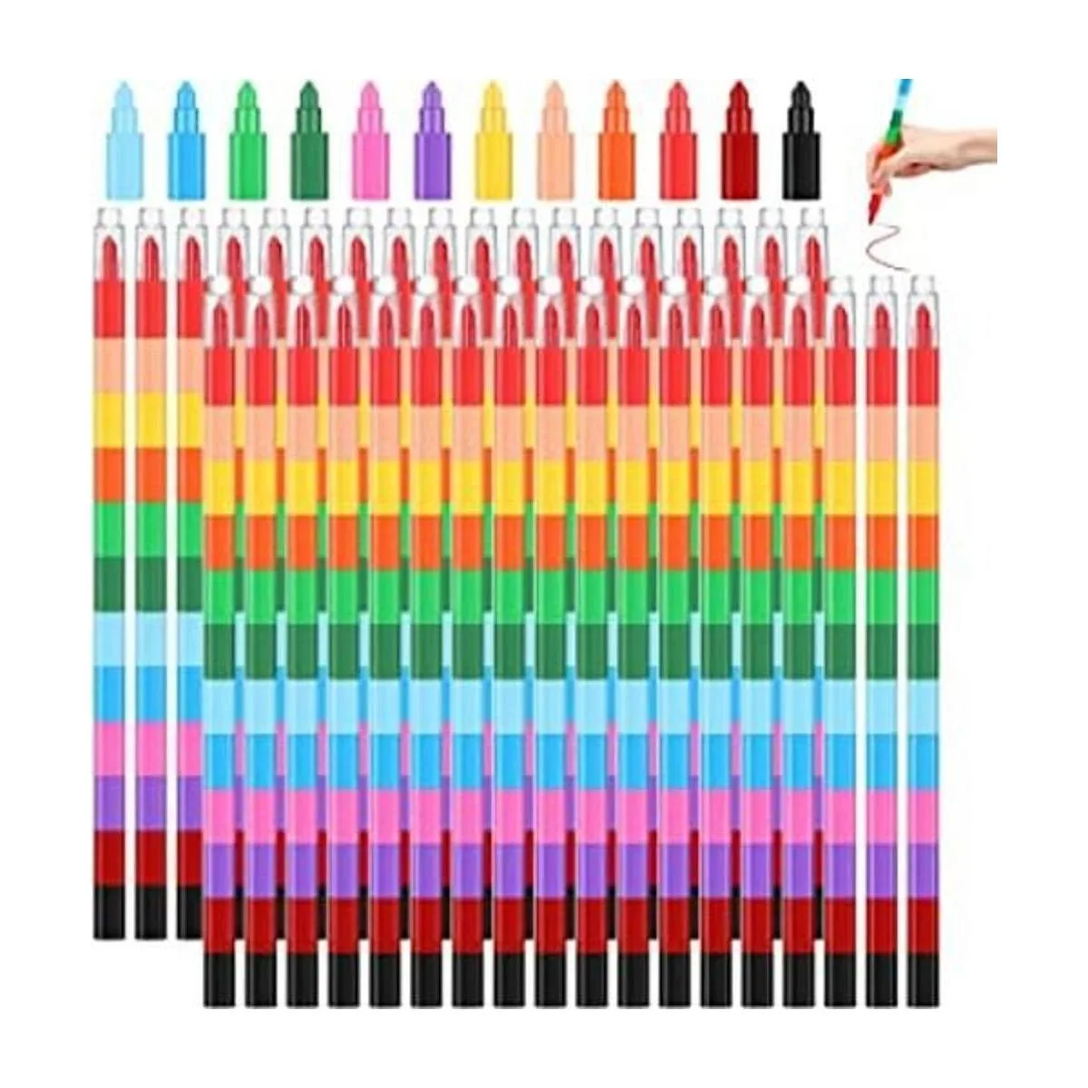 36 lápices de arcoíris apilables para niños, crayones apilables para bricolaje, crayones construibles, regalos de fiesta para suministros escolares de oficina, 12 colores
