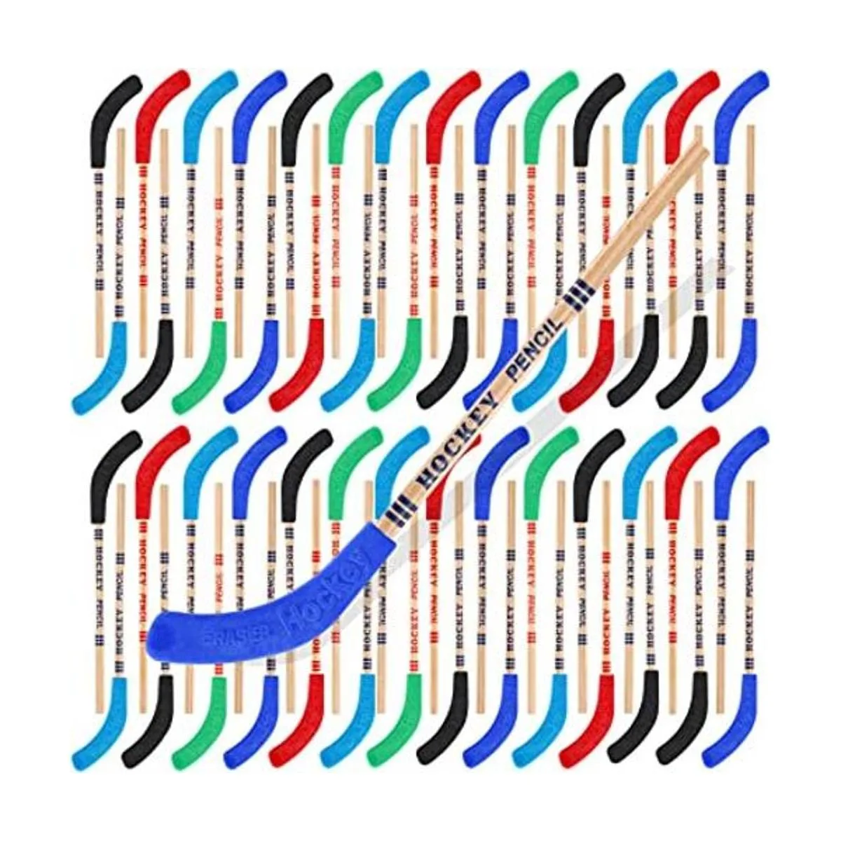 Buena mano de obra: los lápices del equipo están hechos de grafito y madera, combinados con gomas de borrar que encajan como un palo de hockey real; los lápices se pueden afilar desde ambos lados y los borradores son extraíbles, por lo que puedes utilizar los borradores como gorras para otros lápices