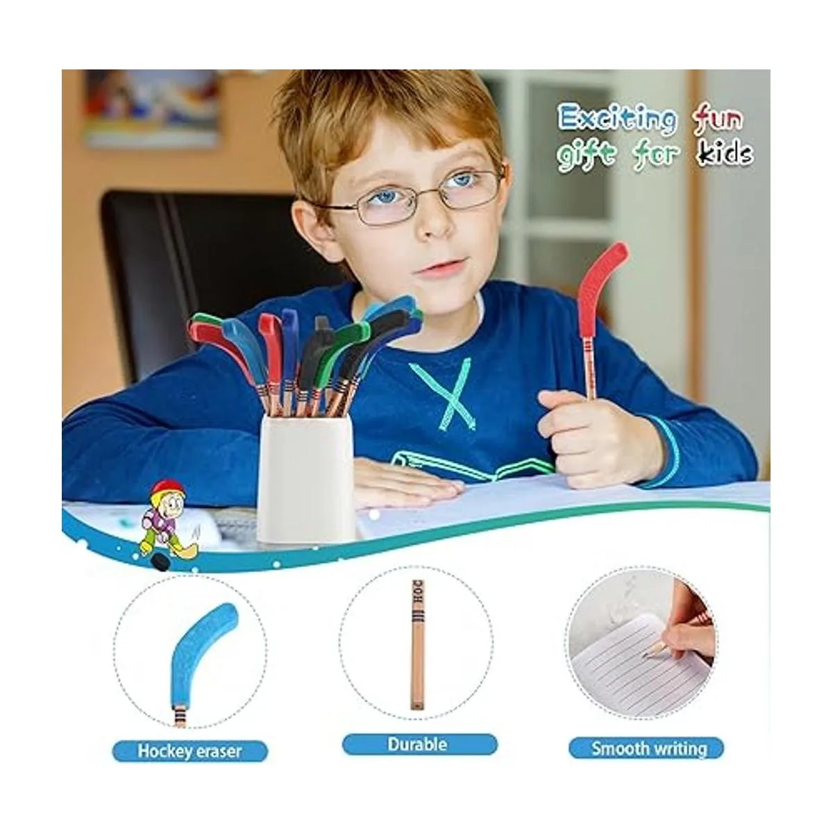 Aplicación múltiple: estos lápices de hockey para niños se pueden aplicar como herramientas de aprendizaje para niños, premios en el aula, recompensas de enseñanza, trabajadores de oficina, artistas, familias, etc. ; También se puede aplicar como regalos de cumpleaños, regalos escolares, regalos para el día del niño, etc., lo que puede fomentar el estudio de tus hijos